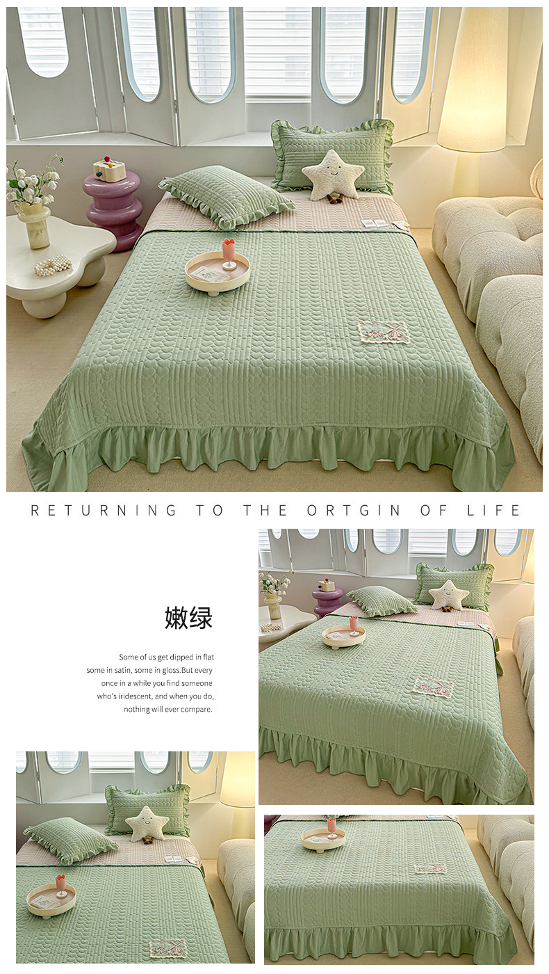 商品名称:源舜家纺 2025新款云感皱皱纱韩版纯色床盖三件套 嫩绿
