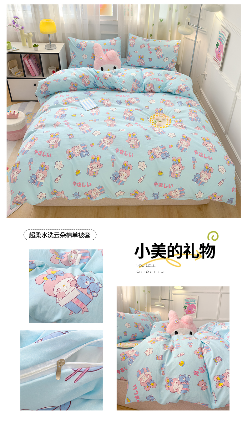 商品名称:宏源家纺 2024新款A类高克重超柔水洗云朵棉单被套 小美的礼物
