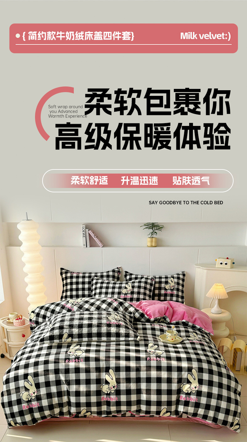 商品名称:(总)添越家纺 2025新款简约款牛奶绒床盖四件套
