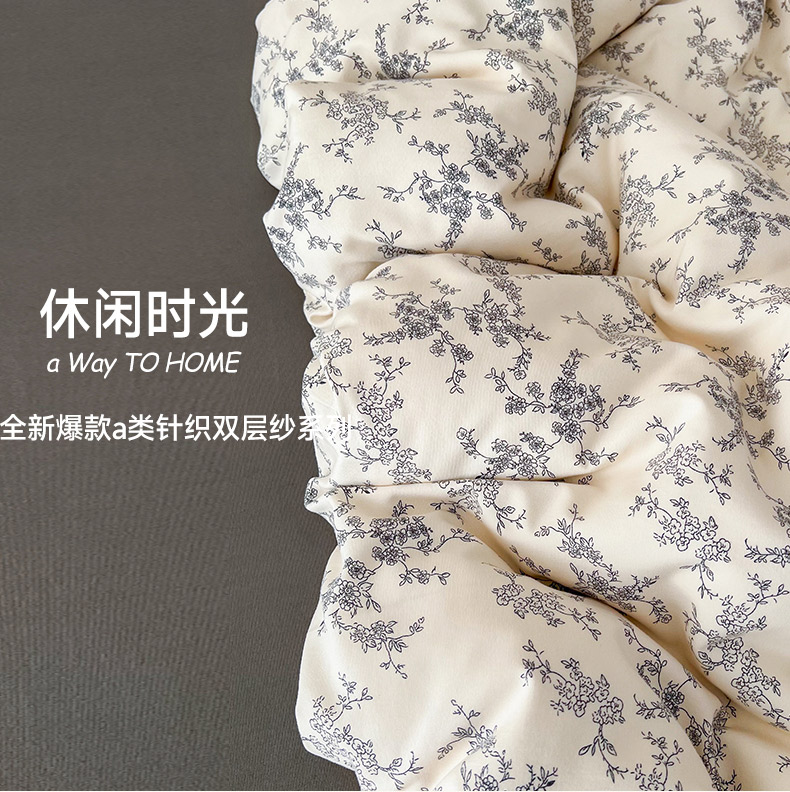 当前位置: 91家纺网 > 商品网购 > 床品套件 > 四件套 > 其它四件套 > 优选良品 2025新款加厚针织棉双层纱四件套小碎花被套床单床笠款学生三件套新款直播热款-床图-系列二 温婉花语