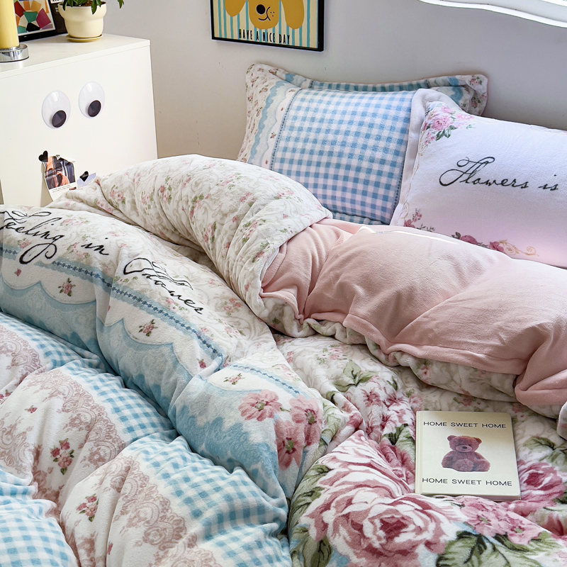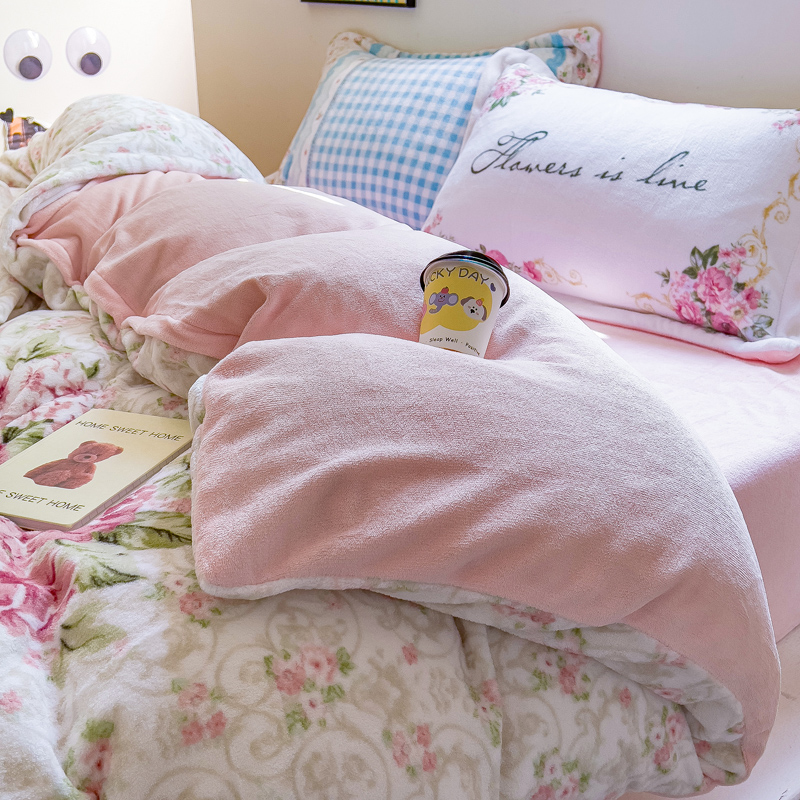 当前位置: 91家纺网 > 商品网购 > 床品套件 > 四件套 > 牛奶绒四件套 > (买家秀 爆款不断货)A类母婴级双面牛奶绒珊瑚绒雪花绒四件套AB版高克重卡通牛奶绒四件套花卉-场景2 秘密花园