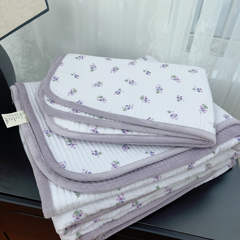 商品名称:暖居 2025新款砂洗棉加绒床盖三件套双面两用棉加绒-叠拍图 葡萄精灵
