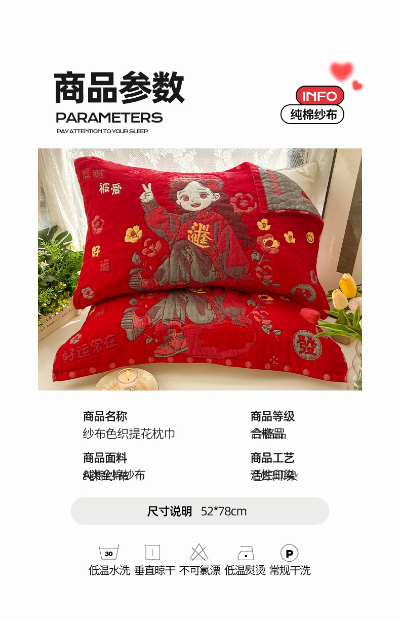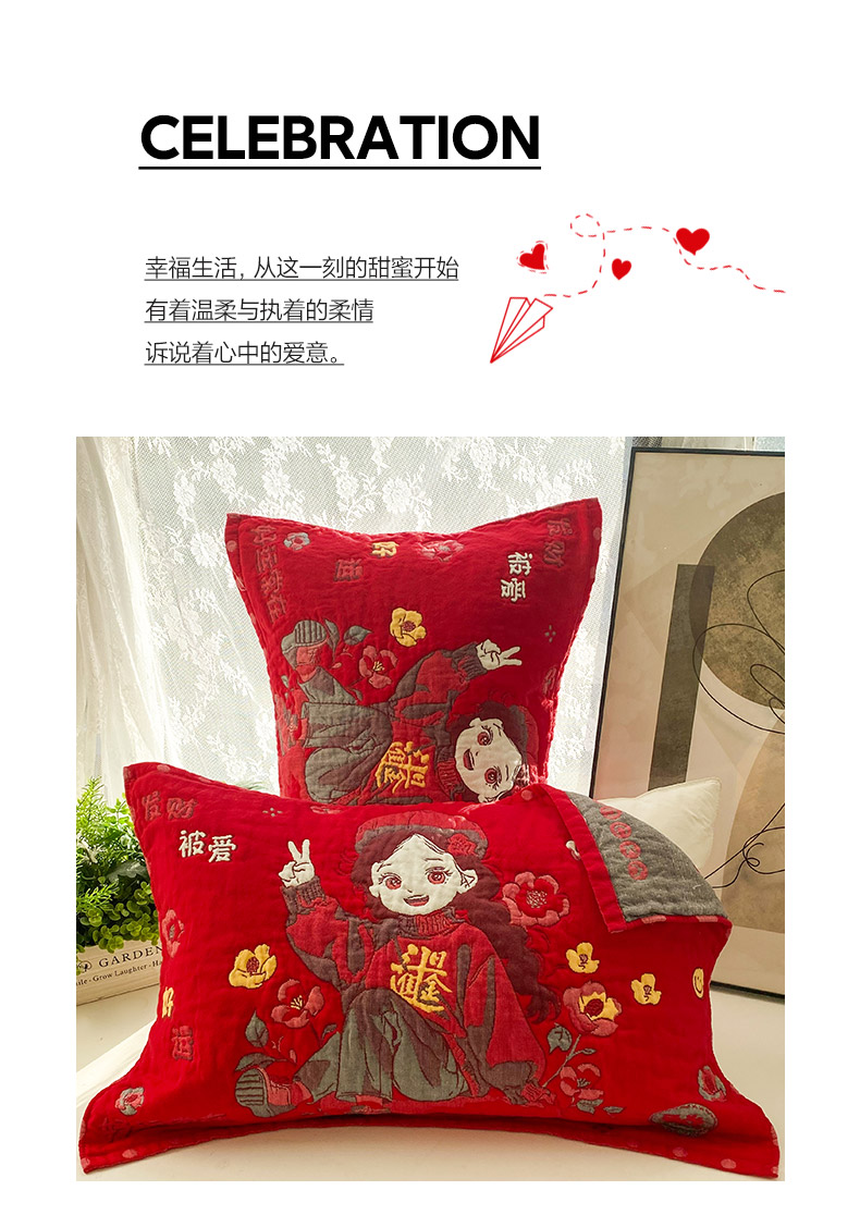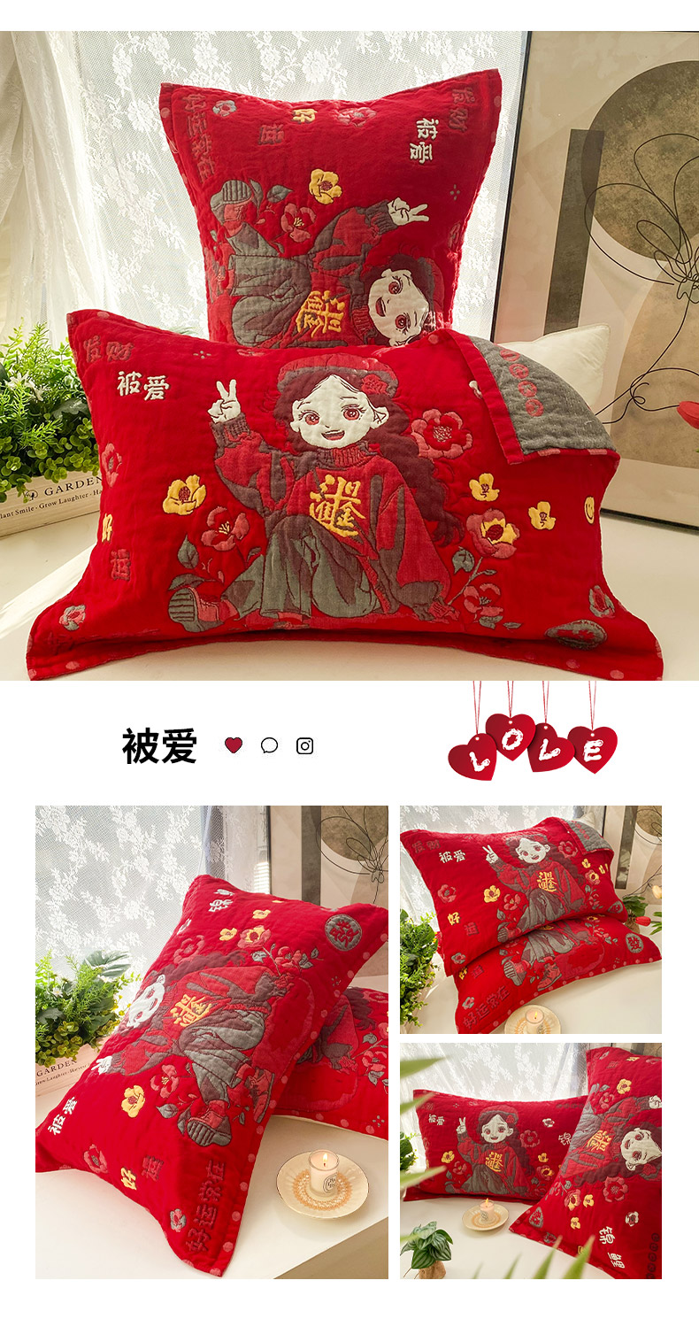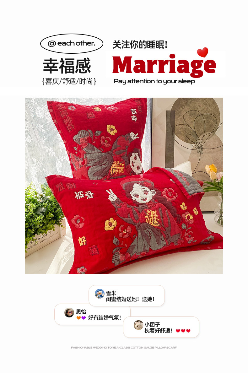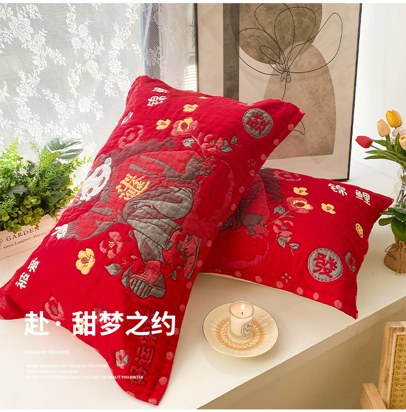 (总)美宜家 2025新款四层全棉纱布婚庆枕巾枕套枕头,百年好合,吉祥如意,喜上眉梢,喜气洋洋,喜结良缘,喜结连理,心心相印,欢欢喜喜,浪漫爱情,双喜临门,真爱永恒,花好月圆