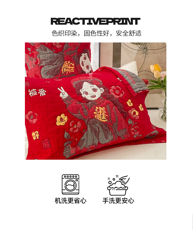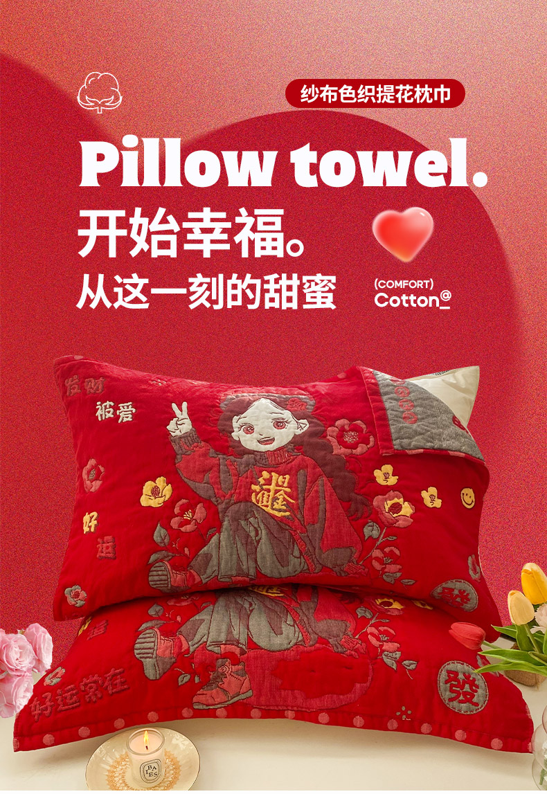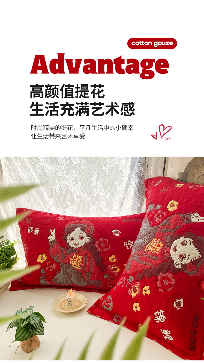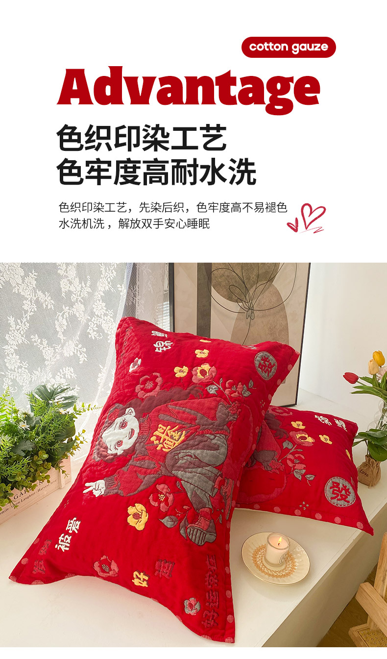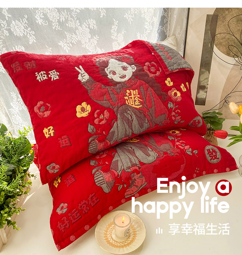 (总)美宜家 2025新款四层全棉纱布婚庆枕巾枕套枕头,百年好合,吉祥如意,喜上眉梢,喜气洋洋,喜结良缘,喜结连理,心心相印,欢欢喜喜,浪漫爱情,双喜临门,真爱永恒,花好月圆