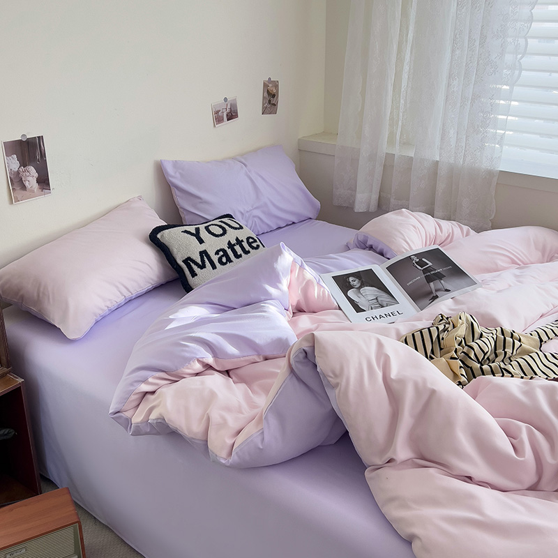 当前位置: 91家纺网 > 商品网购 > 床品套件 > 四件套 > 水洗棉四件套 > 维娜斯家纺 2025新款水洗棉纯色双拼四件套亲肤柔单人被套床单学生三件套 藕紫+亮紫