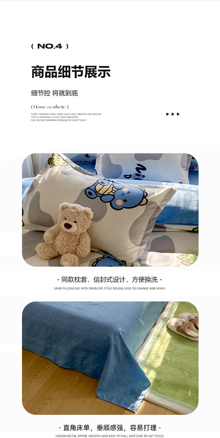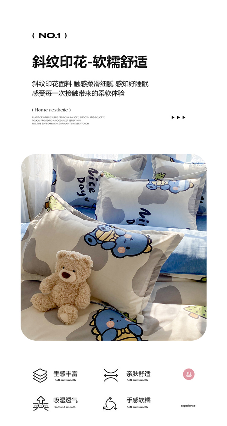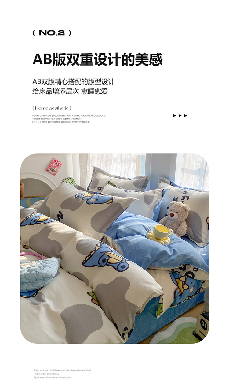 当前位置: 91家纺网 > 商品网购 > 床品套件 > 四件套 > 化纤普通四件套 > 简冠家纺 2024直播爆款北欧风亲肤植物羊绒磨毛四件套恐龙园
