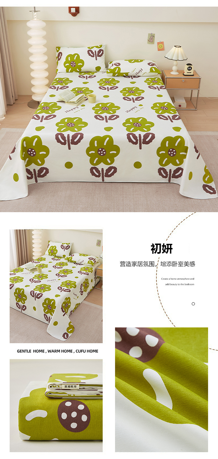 • 91家纺网 家纺一手货源 找家纺 金泰莱 2025新款纯棉全棉粗布床单 初妍