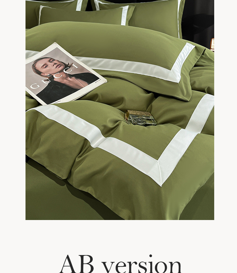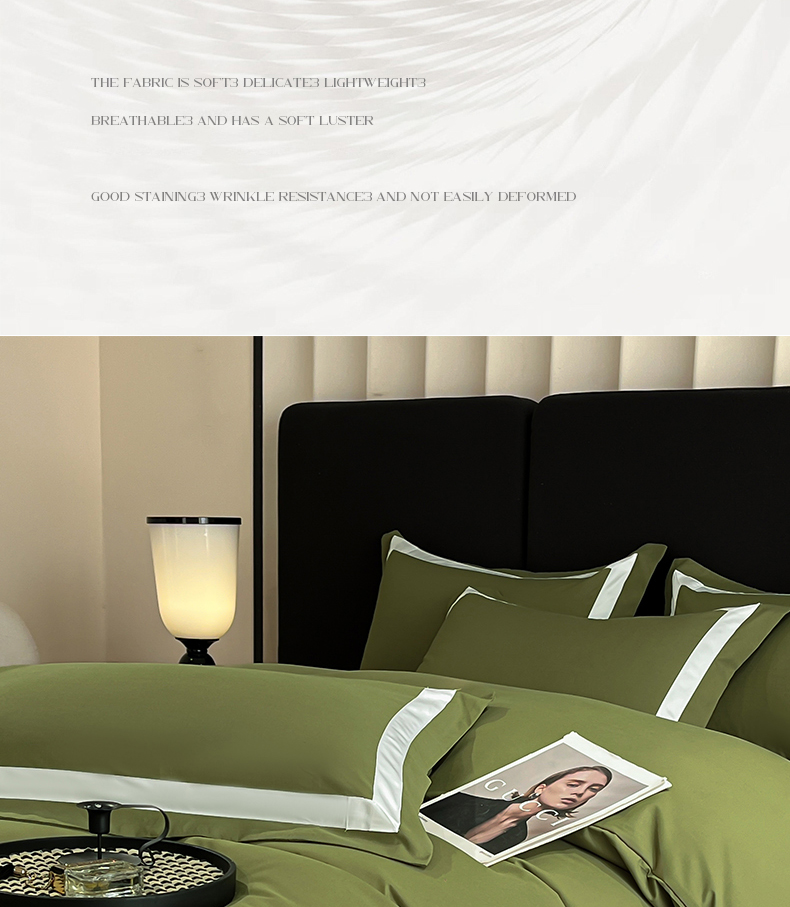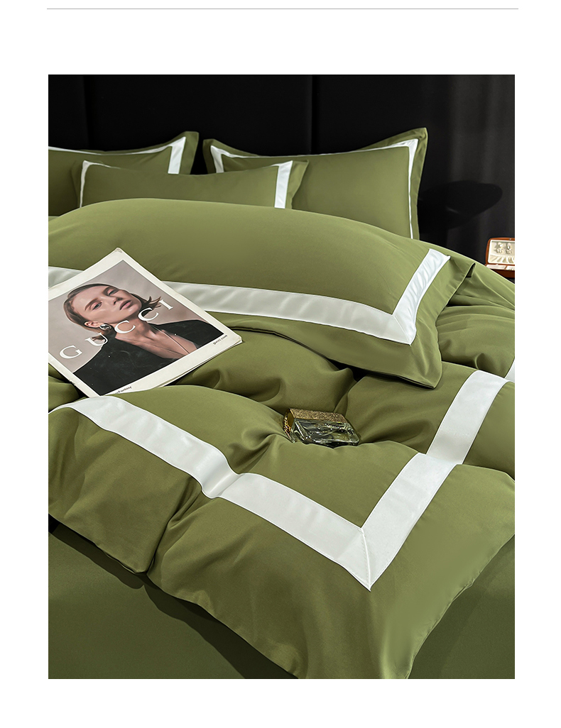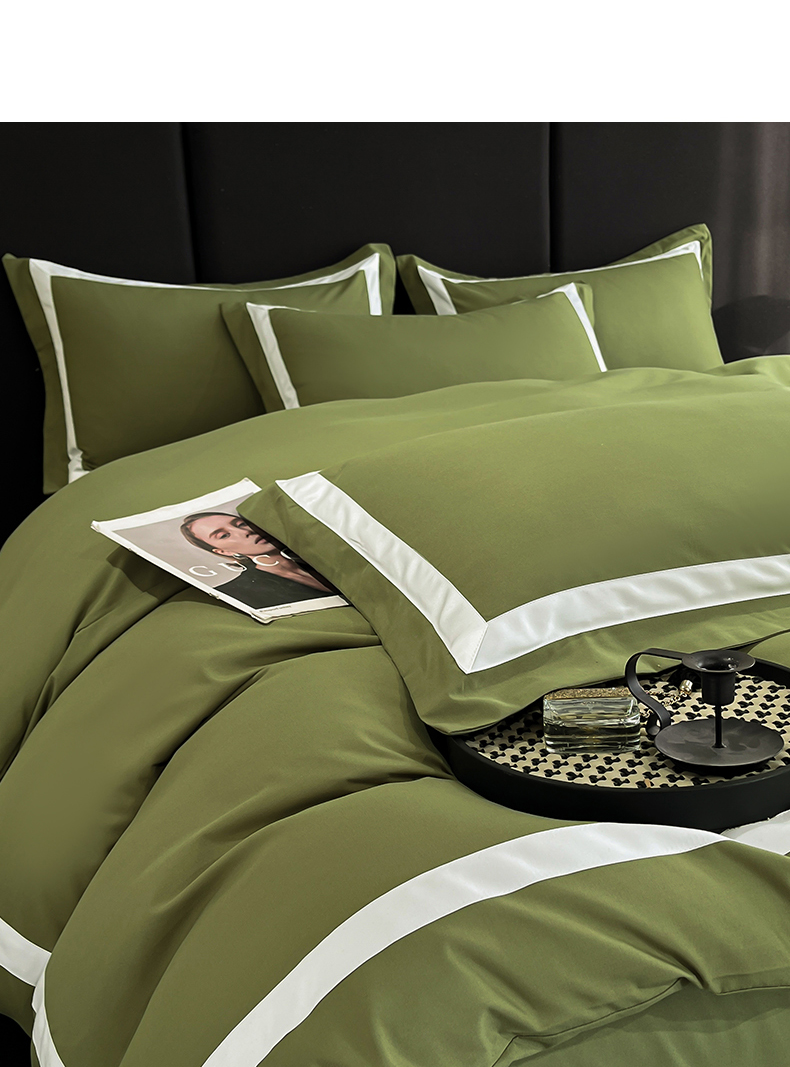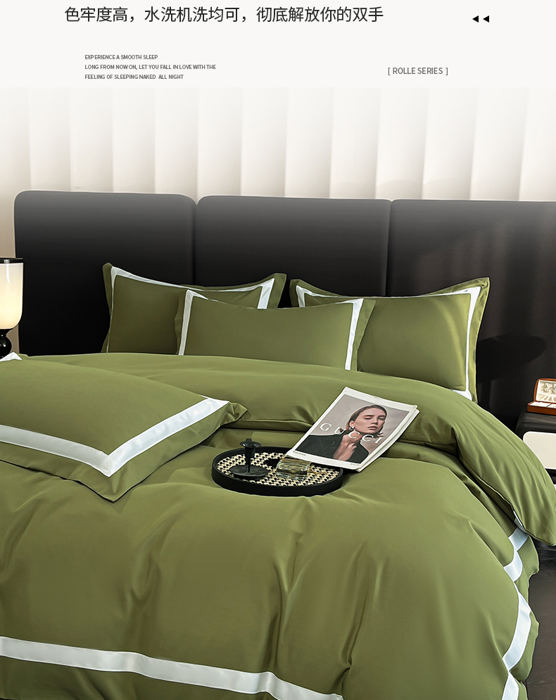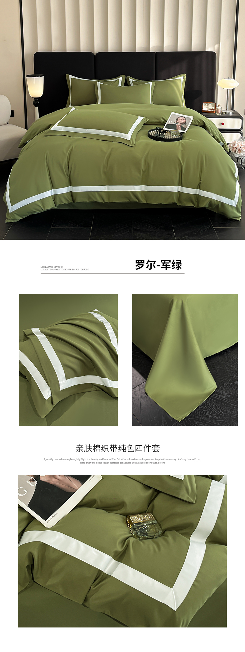 2025新款水洗磨毛酒店风四件套-罗尔 罗尔-军绿