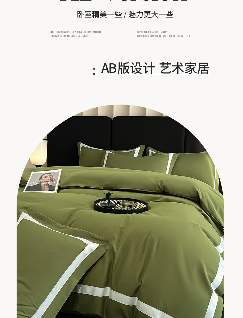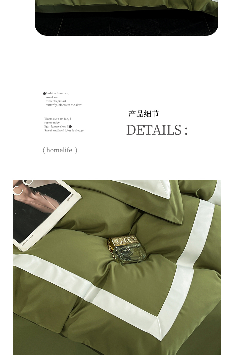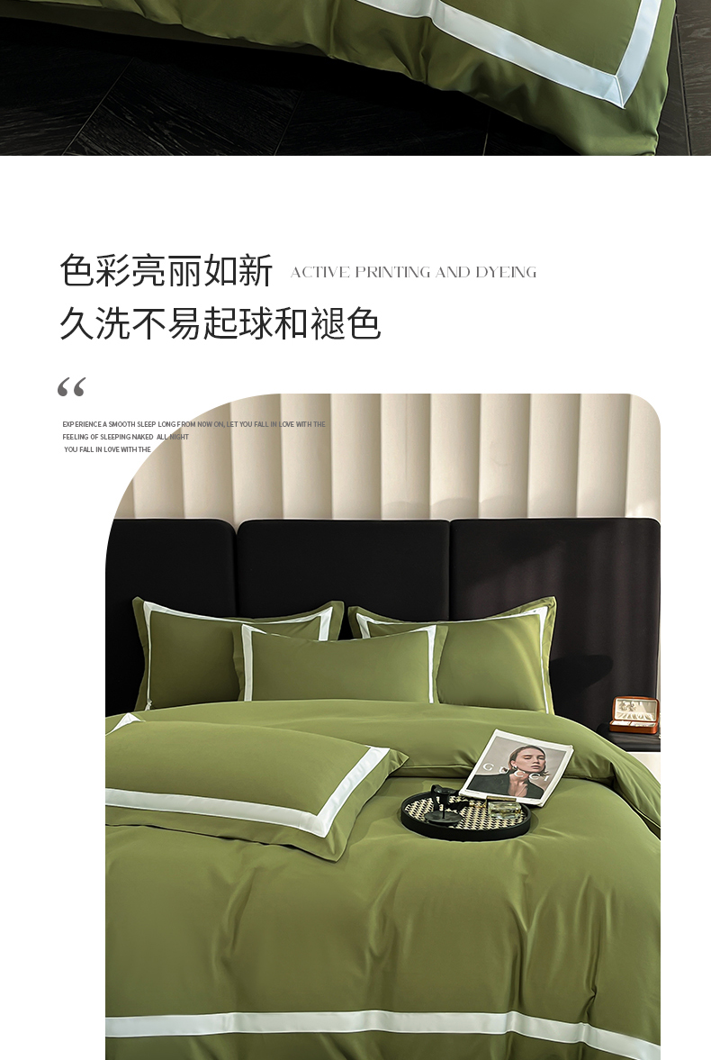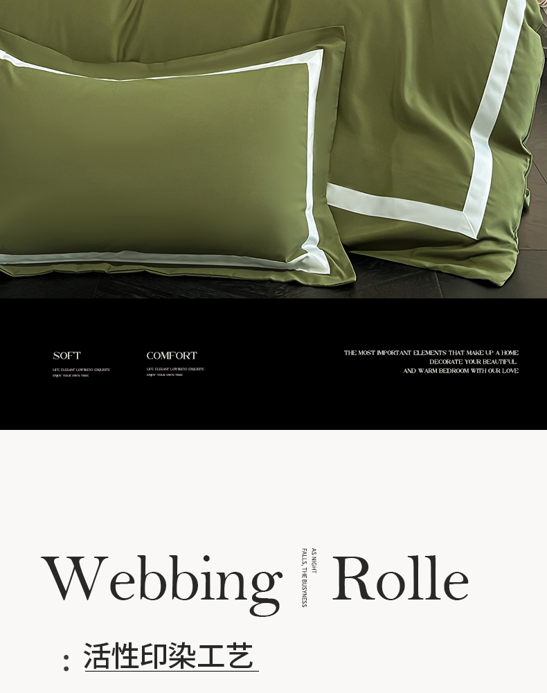 商品名称:2025新款水洗磨毛酒店风四件套-罗尔 罗尔-军绿