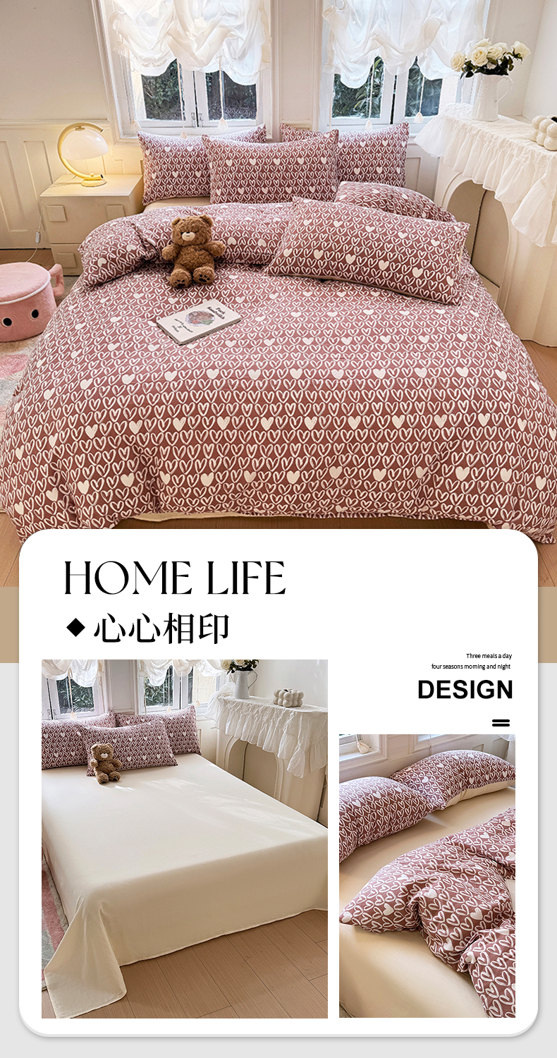 当前位置: 91家纺网 > 商品网购 > 床品套件 > 四件套 > 水洗棉四件套 > 佰亿莱 2025新款卡通双层纱水洗棉四件套 心心相印