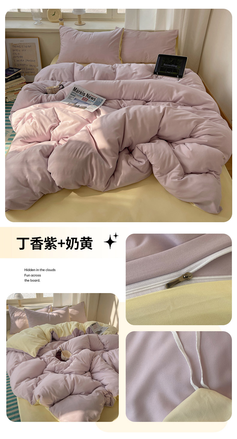 商品名称:芷凡家纺 2025新款亲肤棉纯色双拼四件套 丁香紫+奶黄