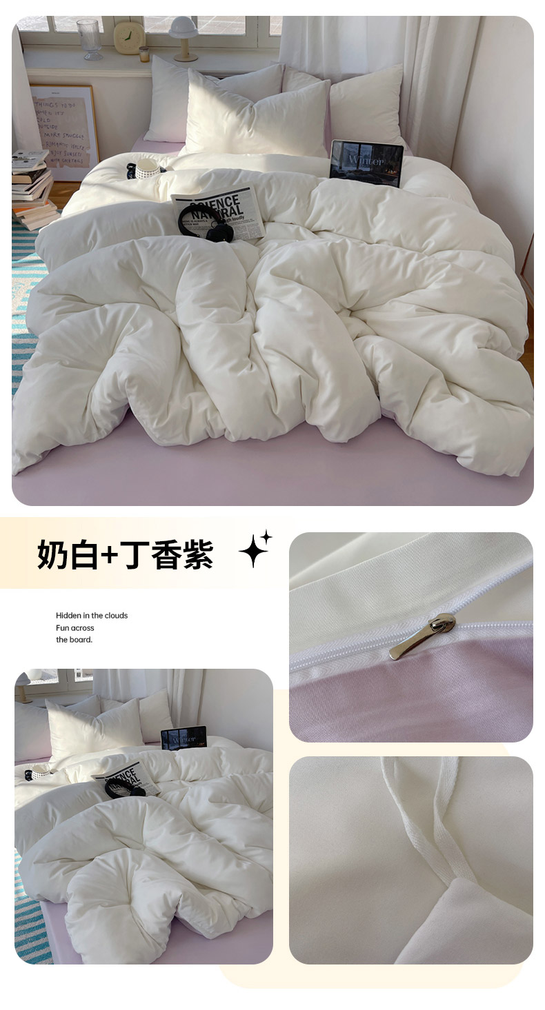 商品名称:芷凡家纺 2025新款亲肤棉纯色双拼四件套 奶白+丁香紫