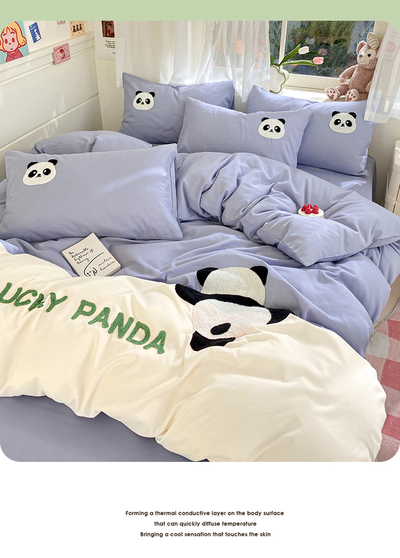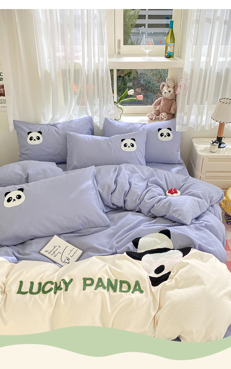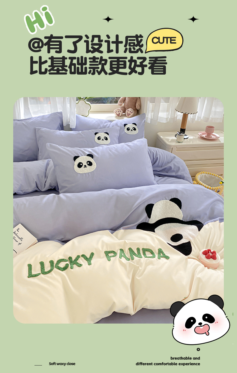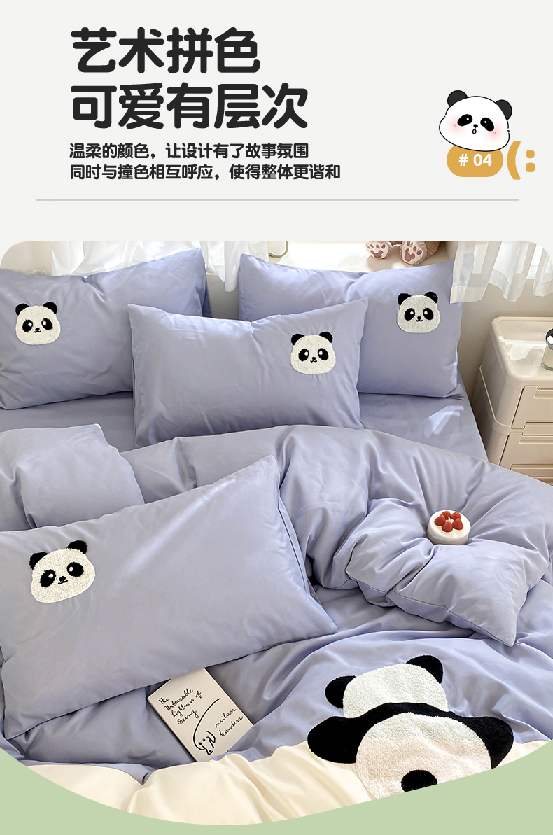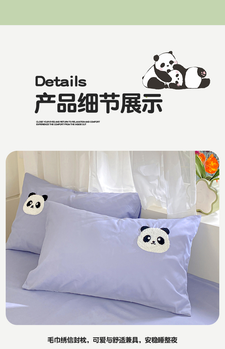 商品名称:盛秋家纺 2025新款A类水洗棉毛巾绣四件套-胖达 胖达-星黛紫