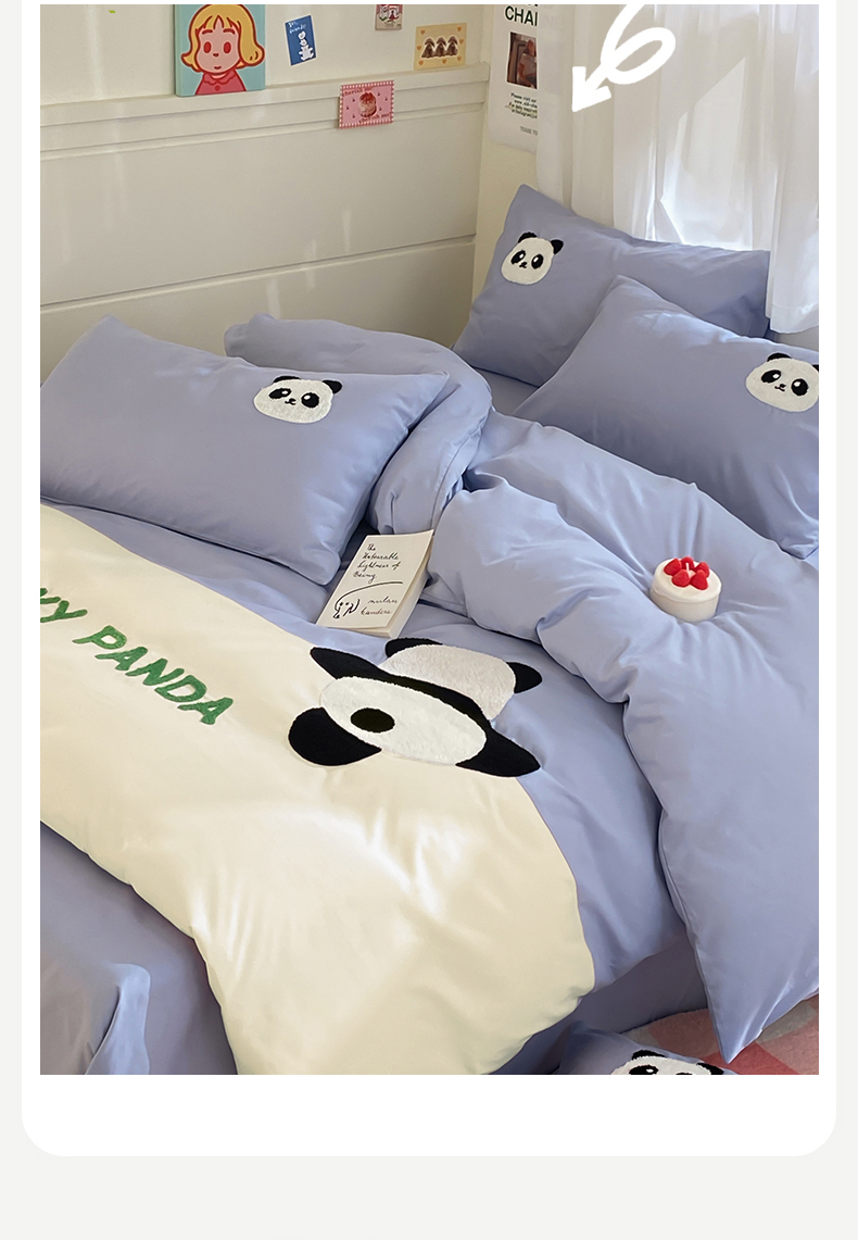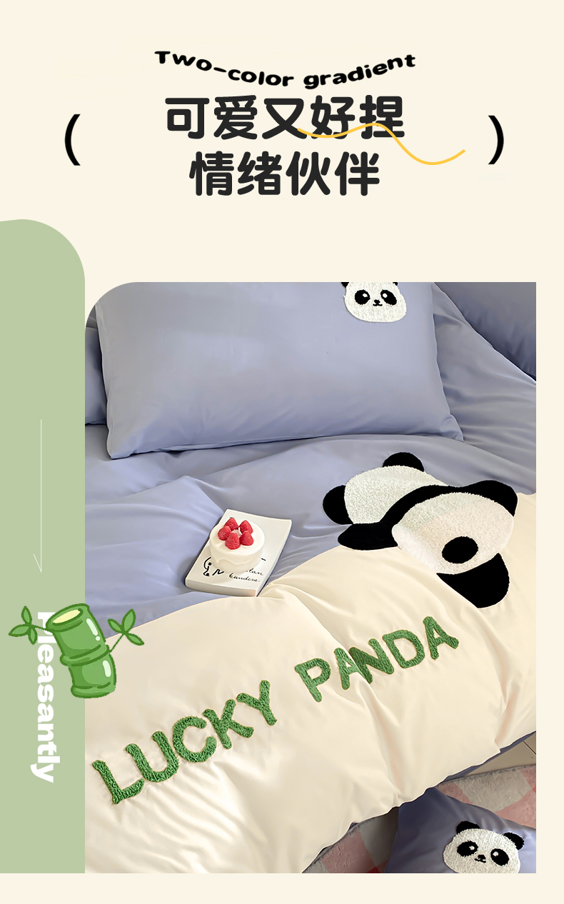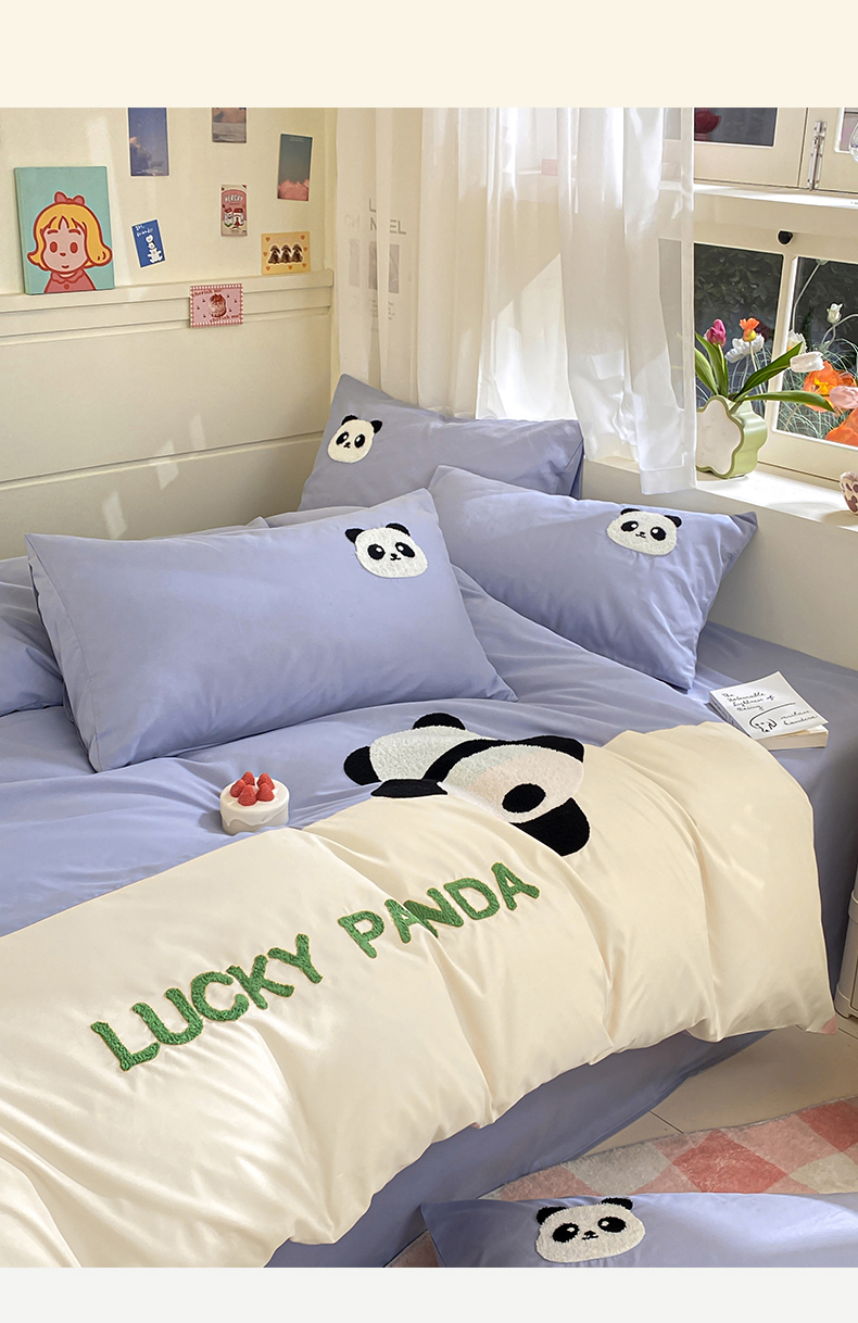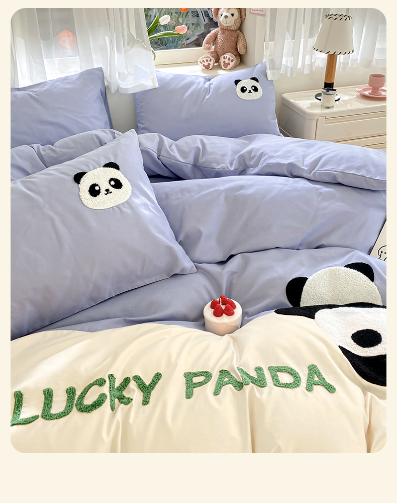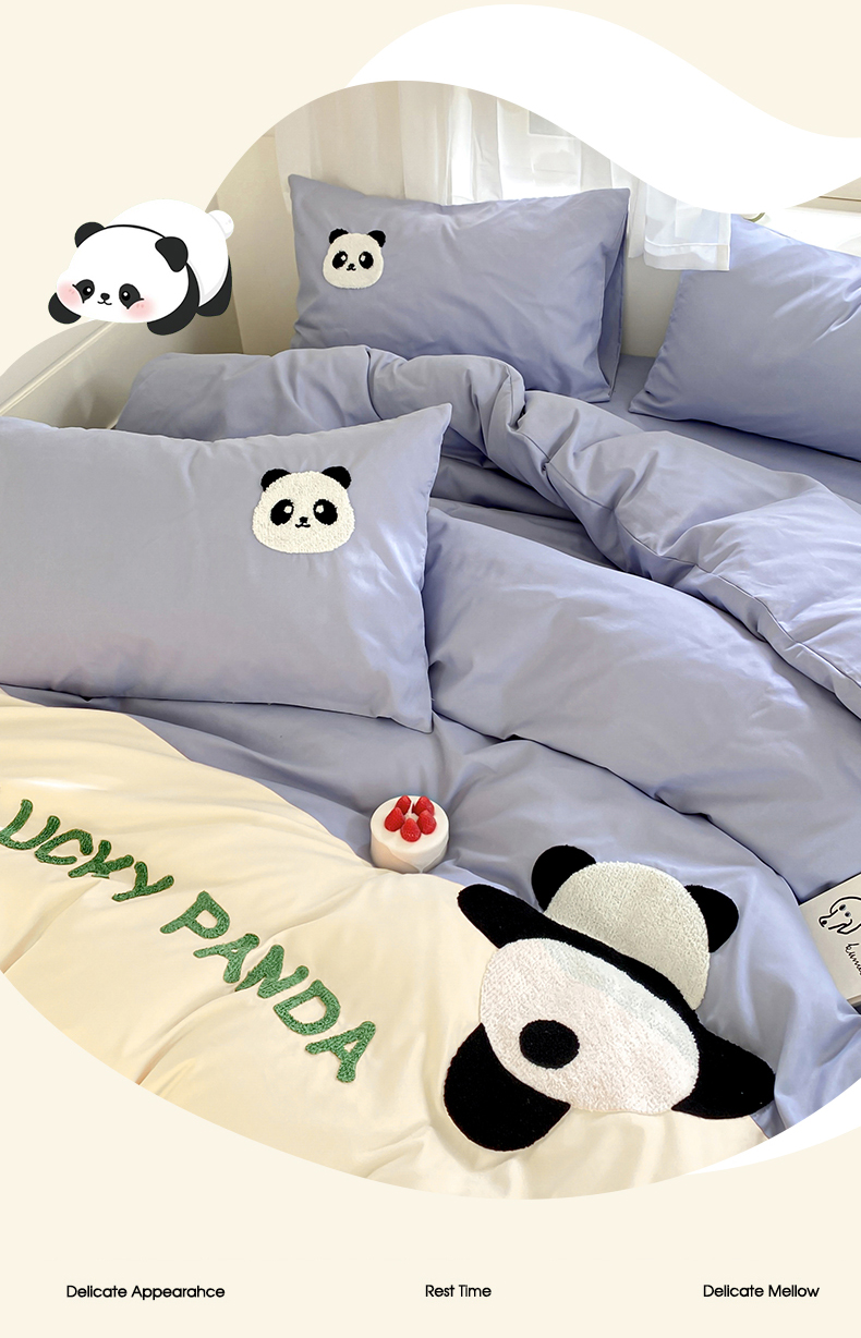 商品名称:盛秋家纺 2025新款A类水洗棉毛巾绣四件套-胖达 胖达-星黛紫