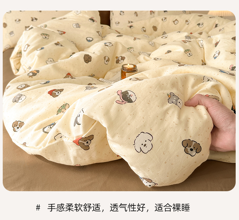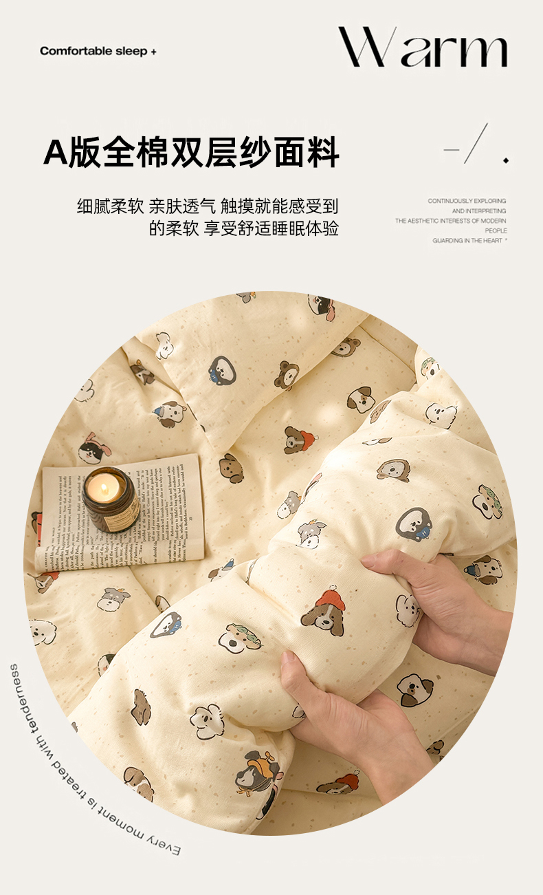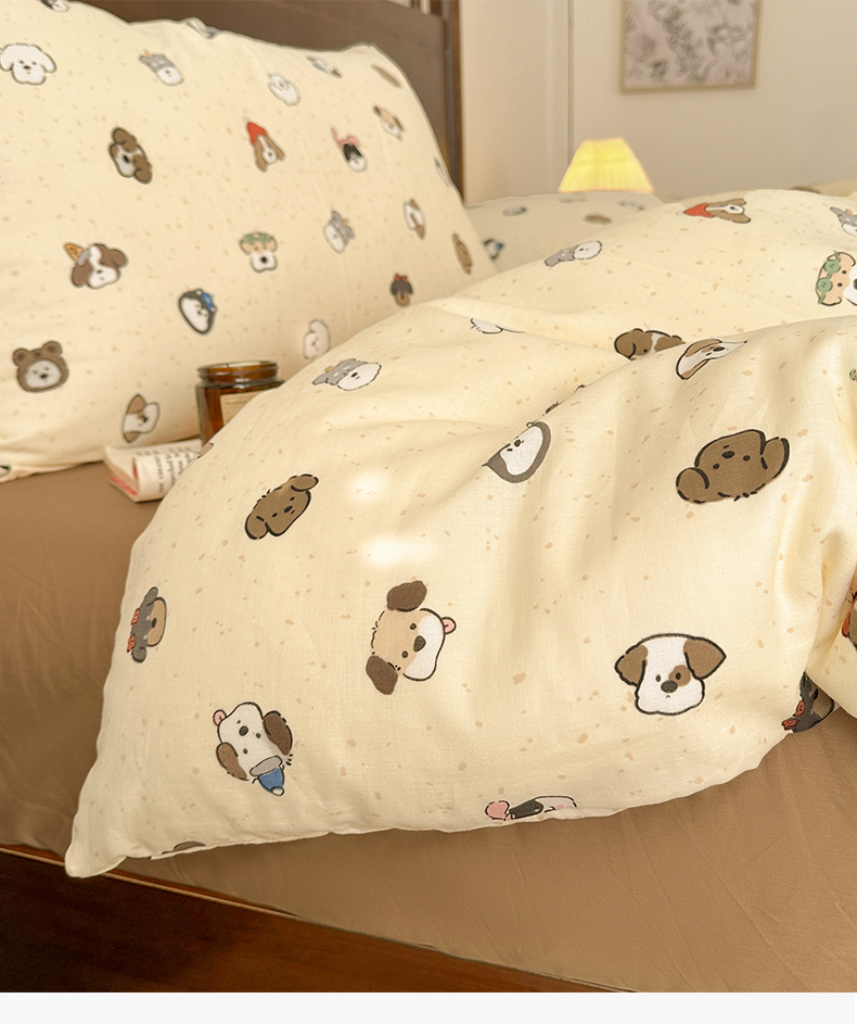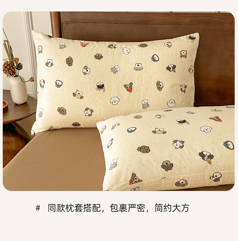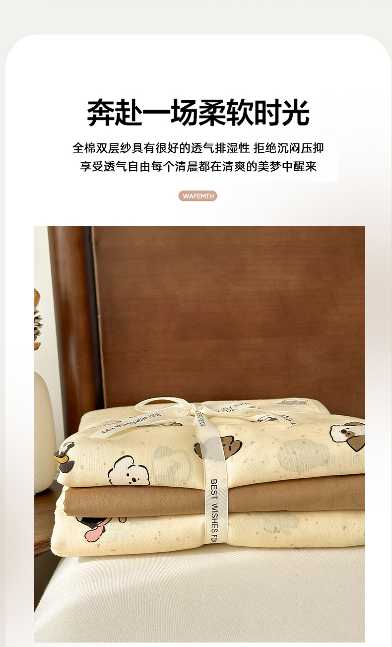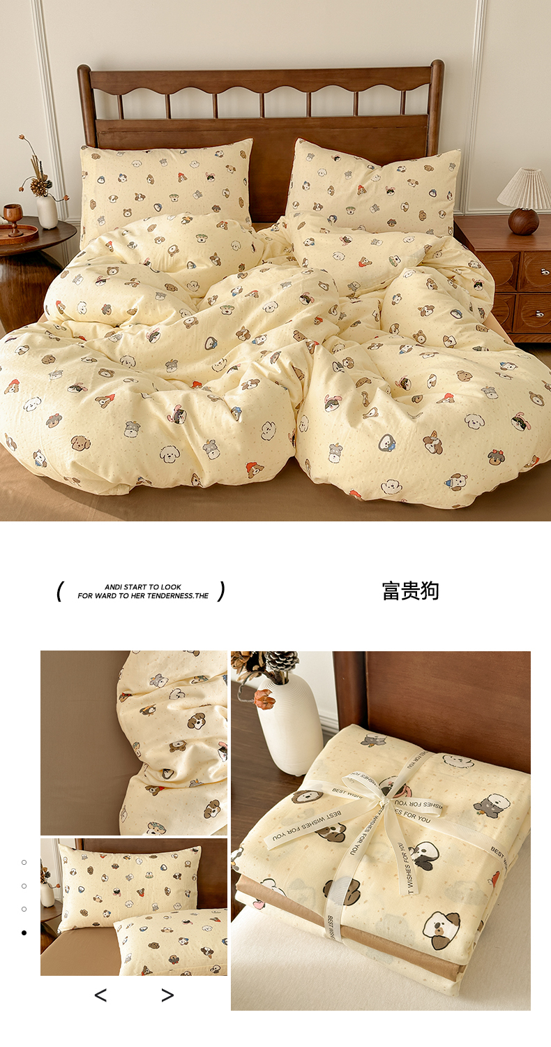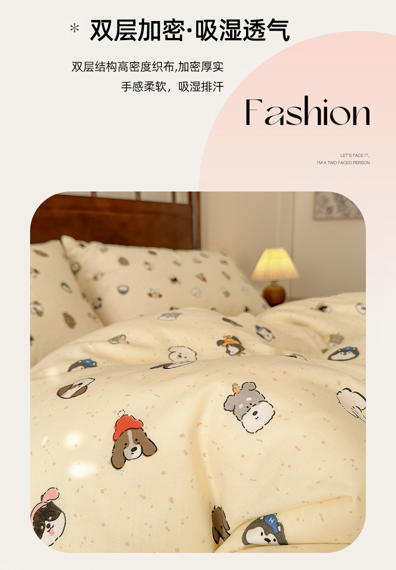 商品名称:呗旺鹿 2025新款A类母婴级全棉有氧双层纱印花四件套 富贵狗