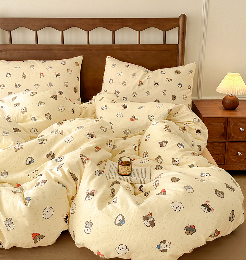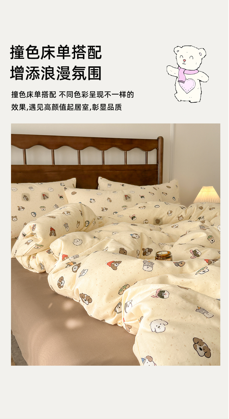 (总)呗旺鹿 2026新款全棉纯棉40支13070卡通印花四件套-场景二,萌星,鼻涕狗,果子象,机灵猫,可爱星人,幸福小熊