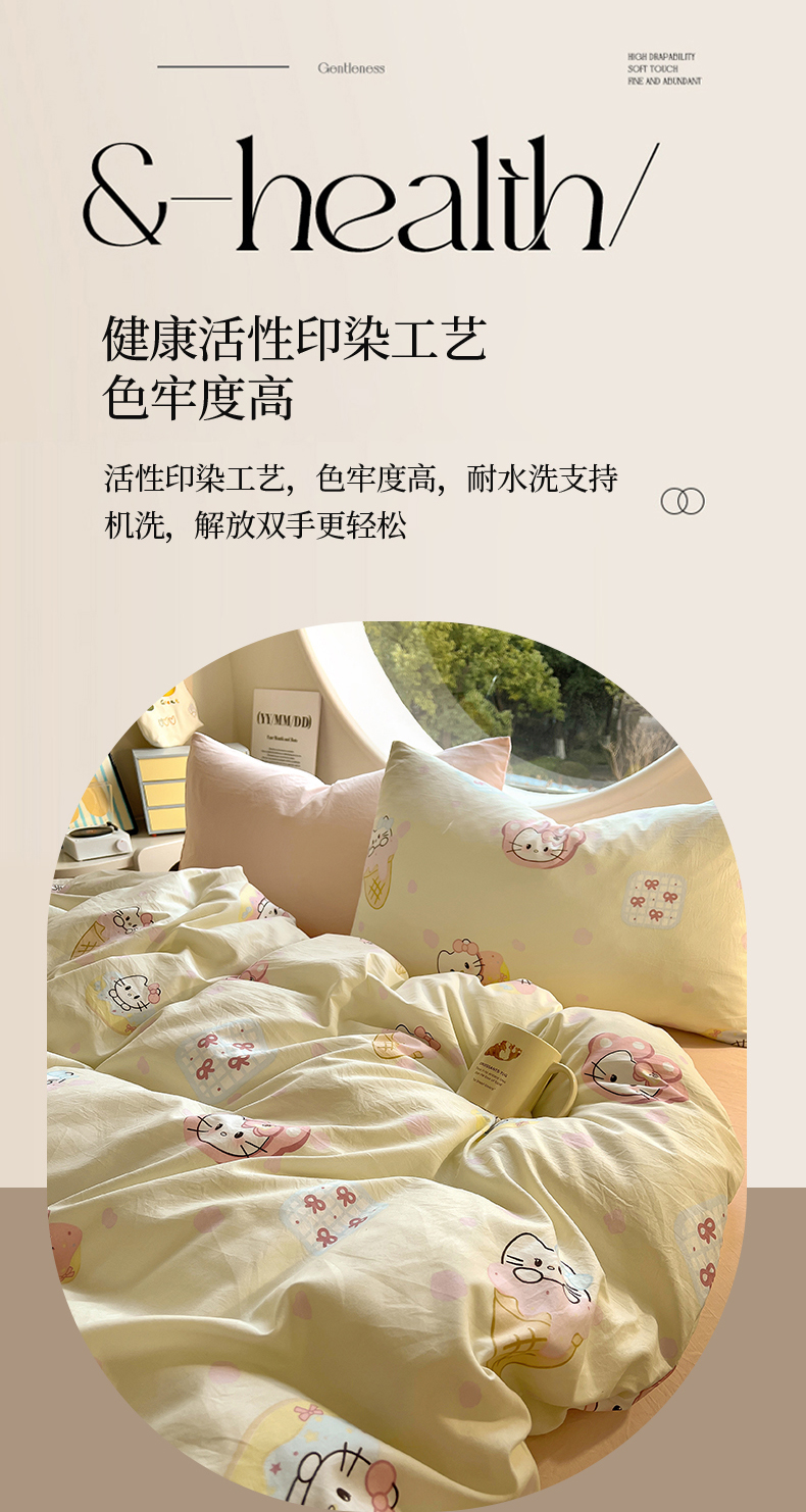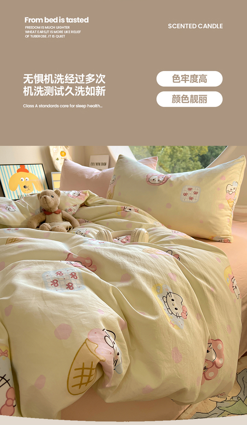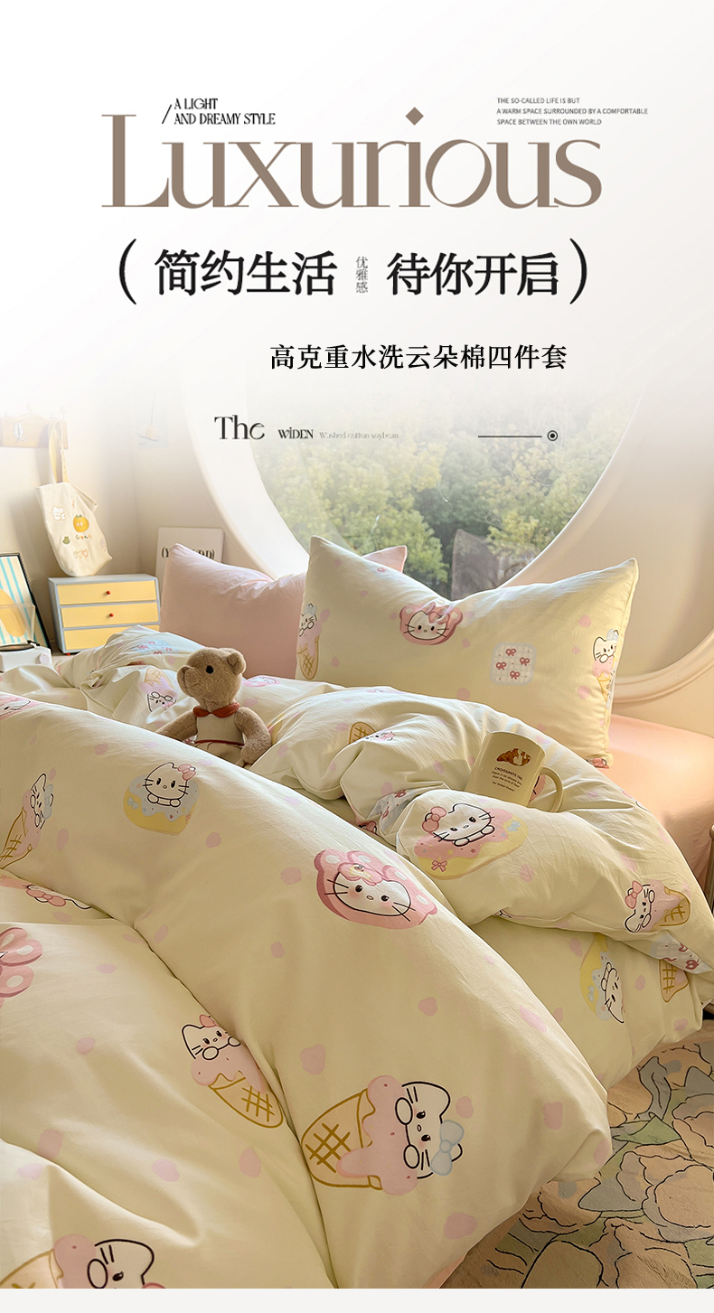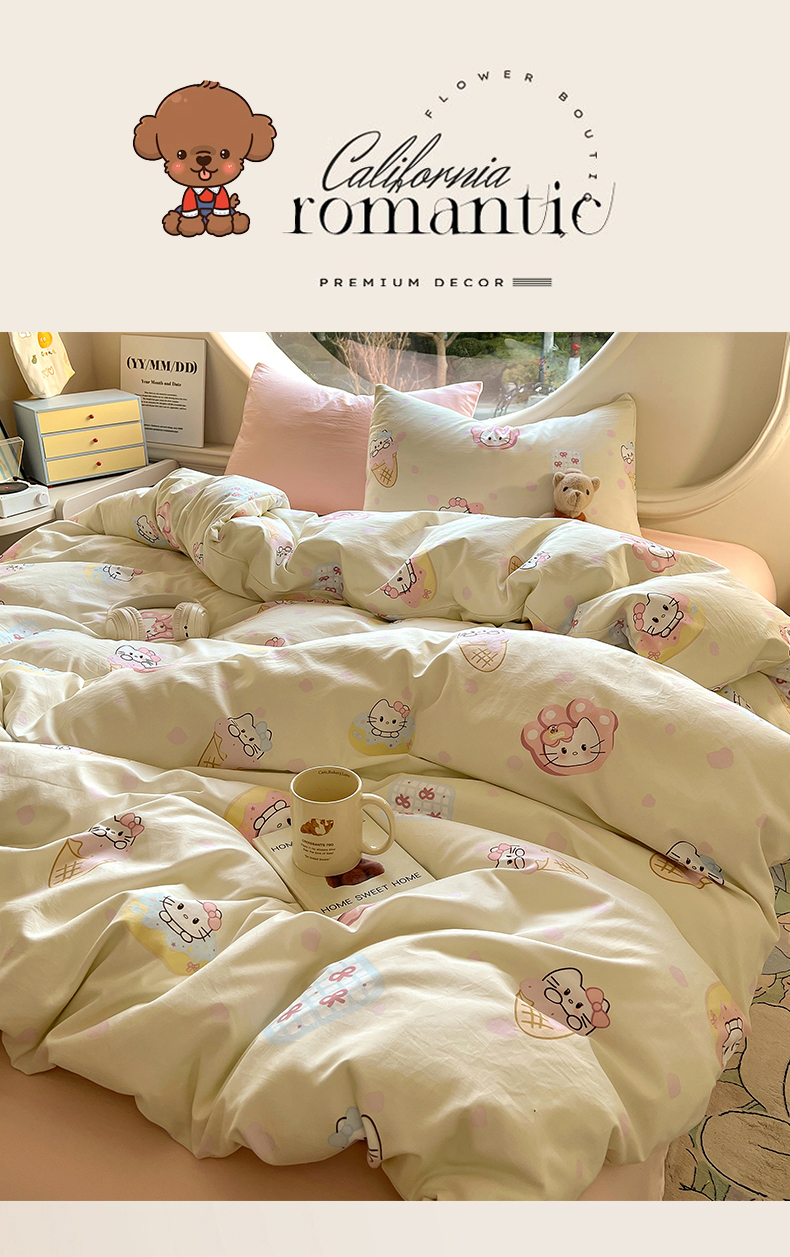 当前位置: 91家纺网 > 商品网购 > 床品套件 > 四件套 > 水洗棉四件套 > 茉礼 2025新款高克重ins风超柔软软糯糯小清新卡通印花水洗棉四件套 甜心KT