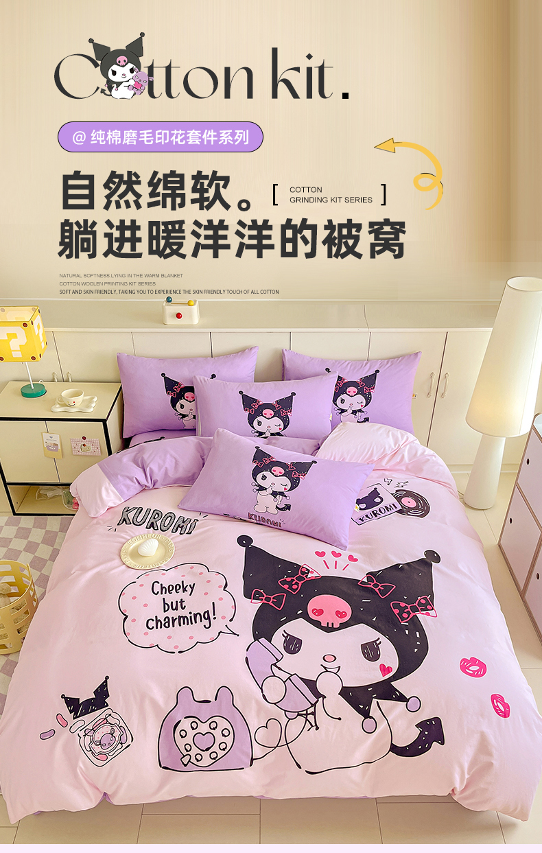 (总)玉元坊 2025新款正版授权三丽鸥系列全棉纯棉三四件套 基础款,巴库库洛米-基础款,爆米花-基础款,草莓库洛米-基础款,格子库洛米-基础款,蓝莓库洛米-基础款,美味库洛米-基础款,扑克-基础款,糖果-基础款,晚安库洛米-基础款,饮料-基础款