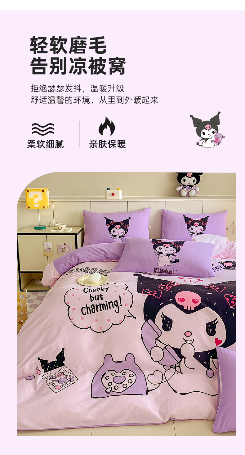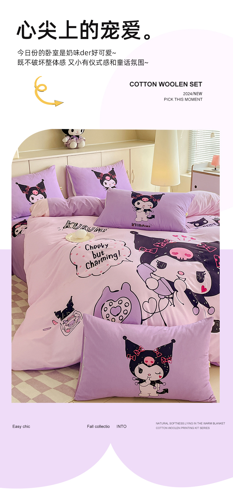 玉元坊 2025秋冬三丽鸥卡通加厚纯棉磨毛全棉大版四件套 亲爱的