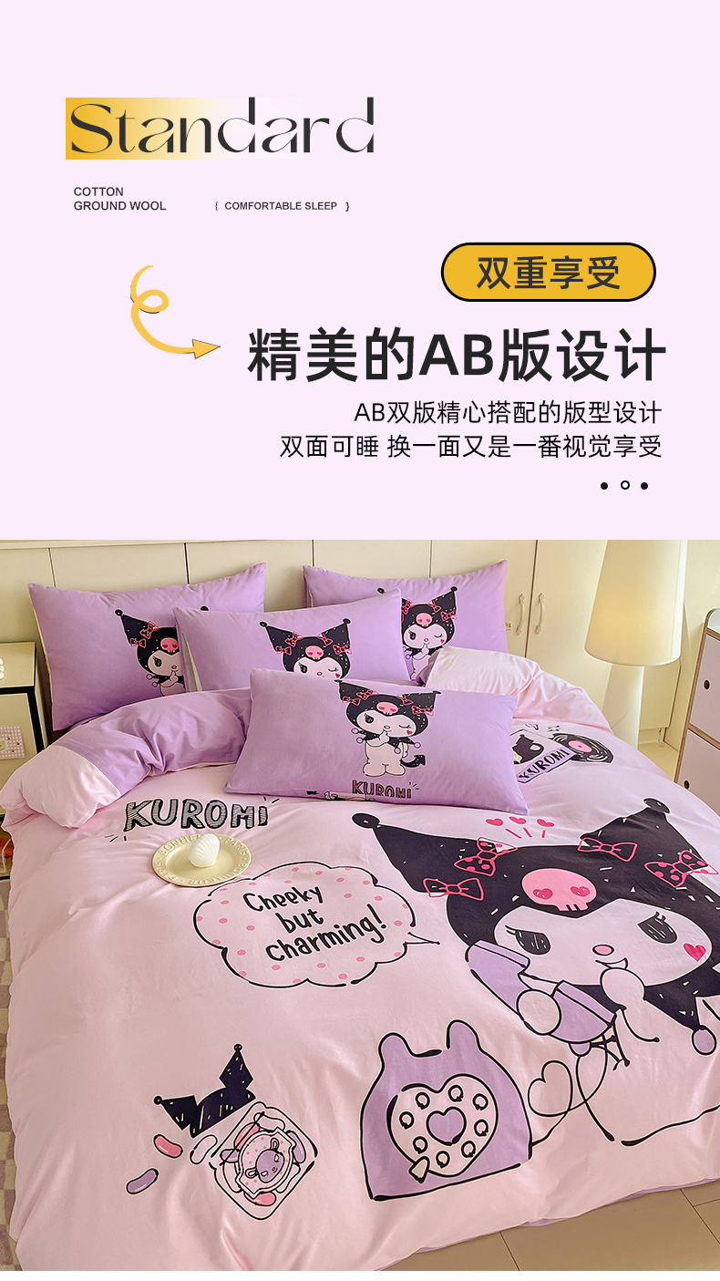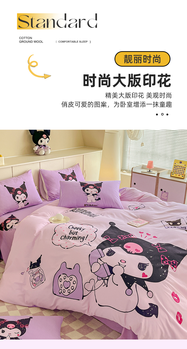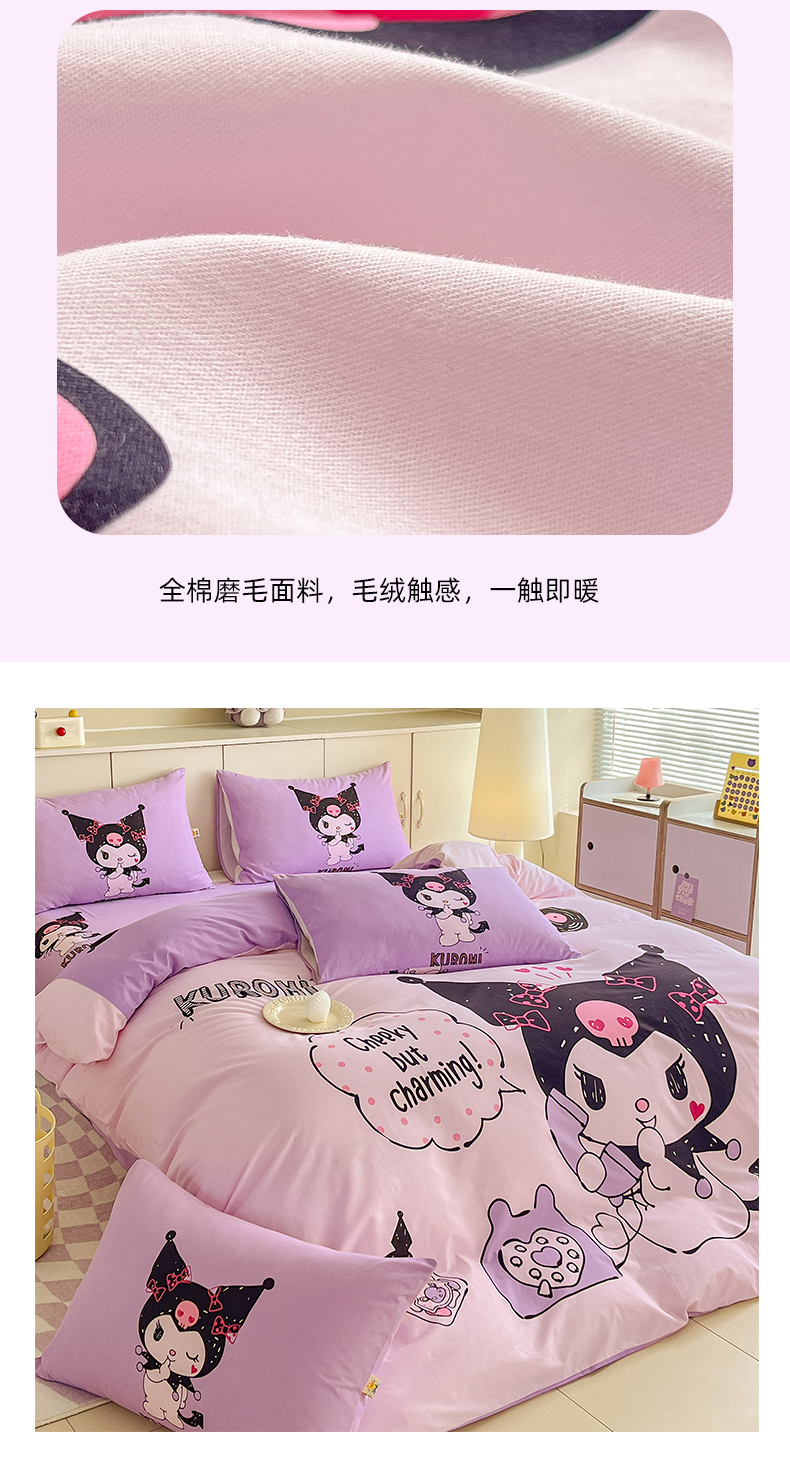 商品名称:玉元坊 2025秋冬三丽鸥卡通加厚纯棉磨毛全棉大版四件套 亲爱的