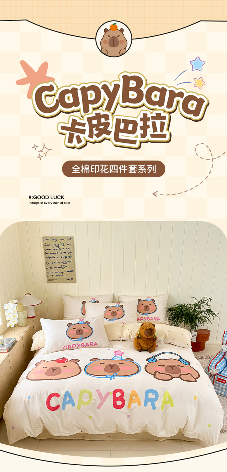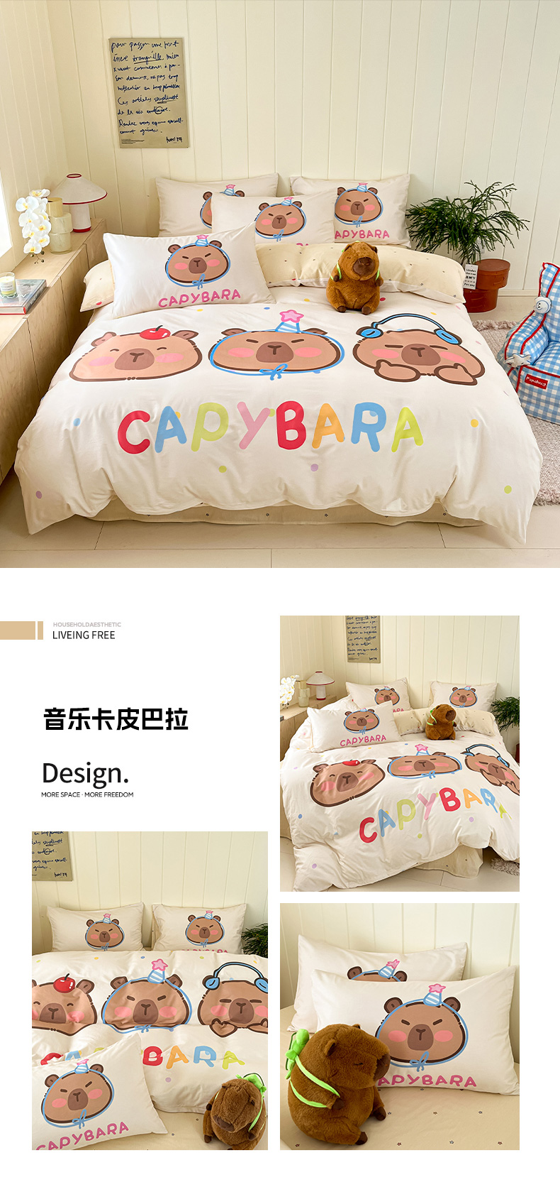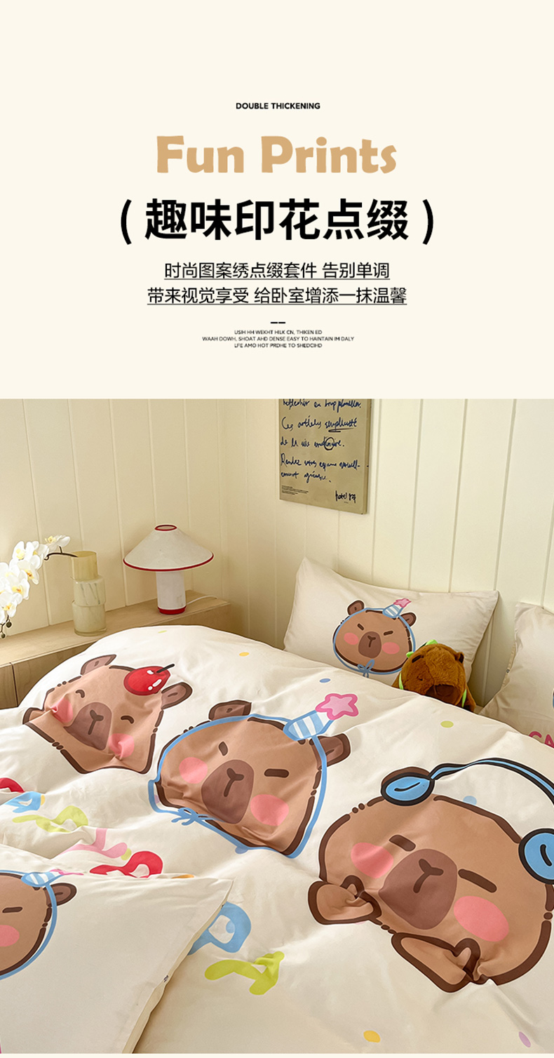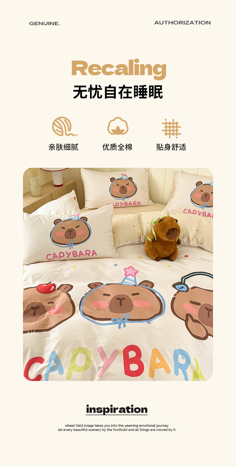 当前位置: 91家纺网 > 商品网购 > 床品套件 > 四件套 > 全棉普通四件套 > 博雅 2025新款卡皮巴拉系列全棉印花四件套 音乐卡皮巴拉