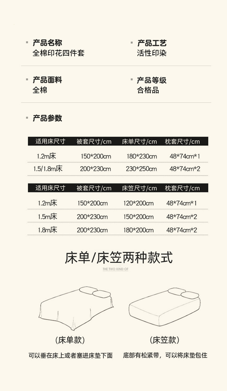1.8m床笠款四件套 | ¥125.00 |