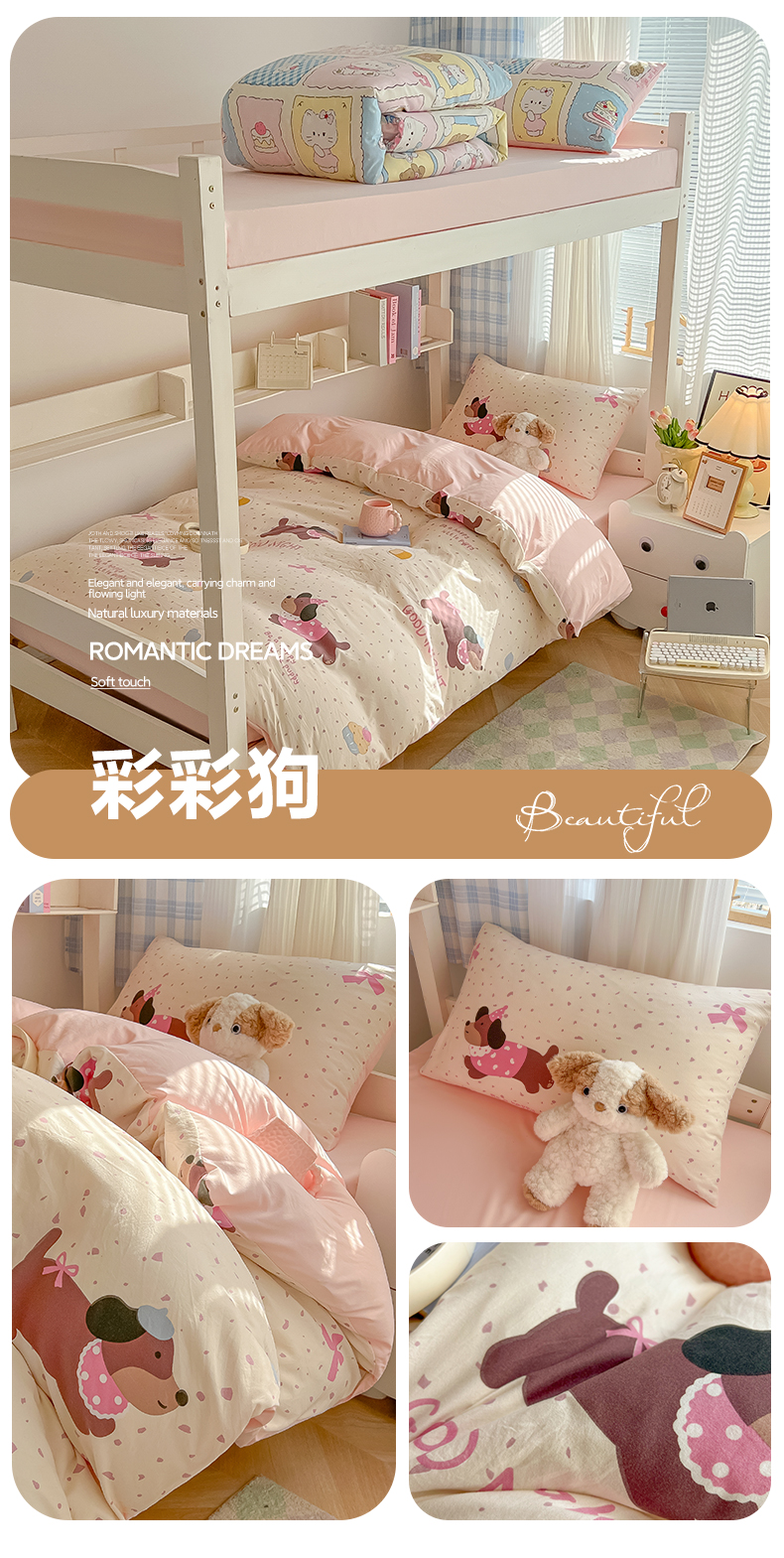 当前位置: 91家纺网 > 商品网购 > 床品套件 > 三件套 > 韩巢家纺 2025新款学生宿舍上下铺印花被套床单三件套 彩彩狗