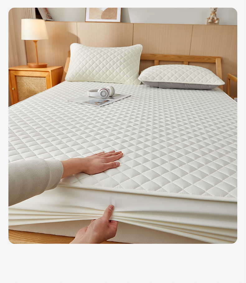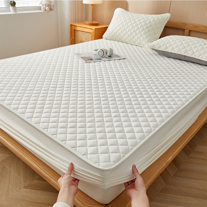 布卢姆床垫 2025新款A类水洗棉大豆夹棉床笠 菱形格-米白