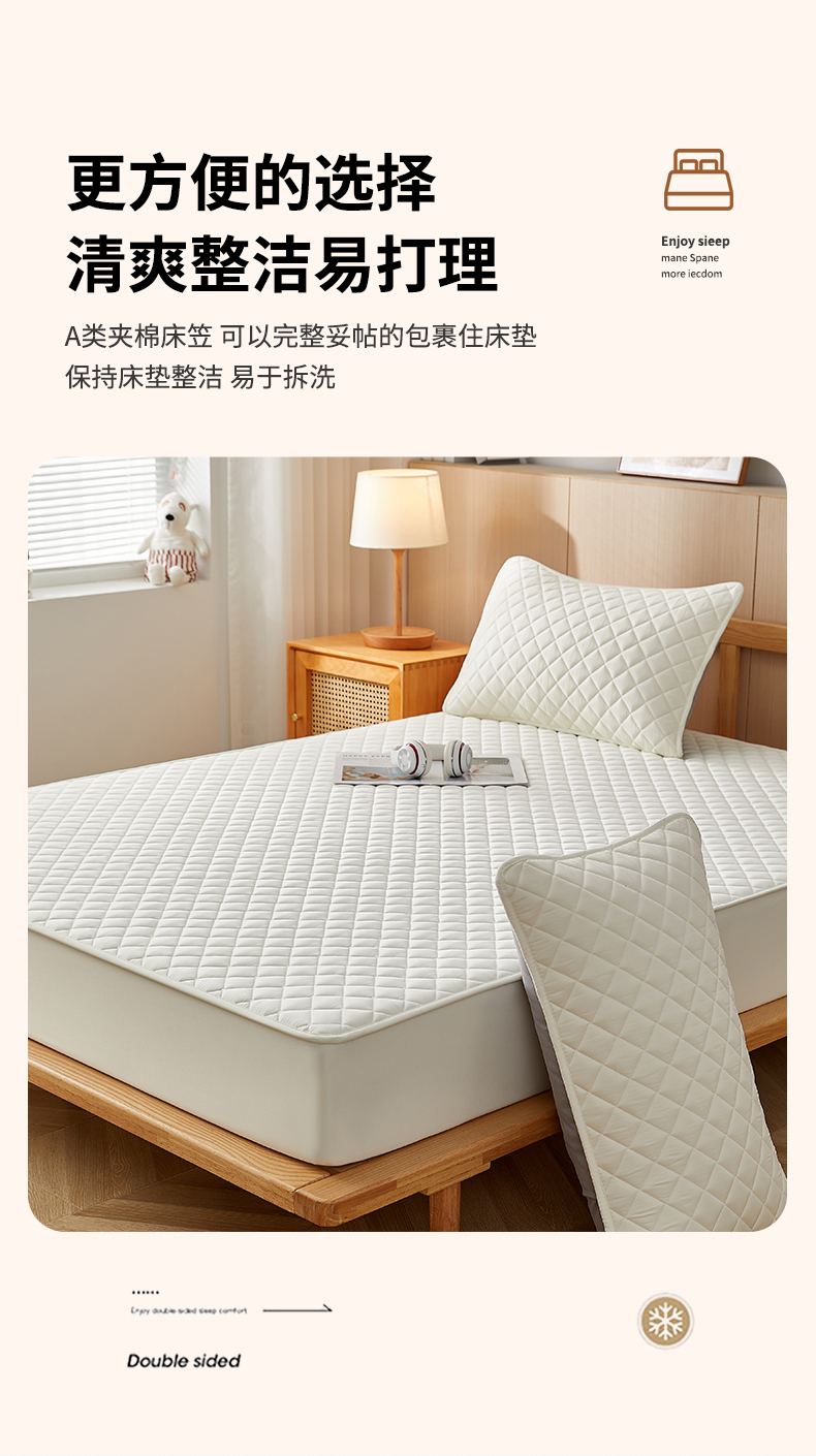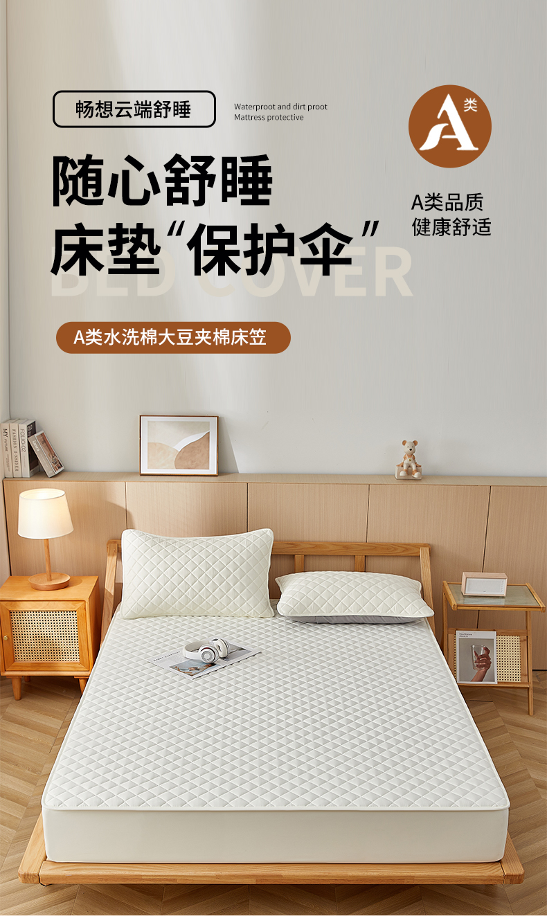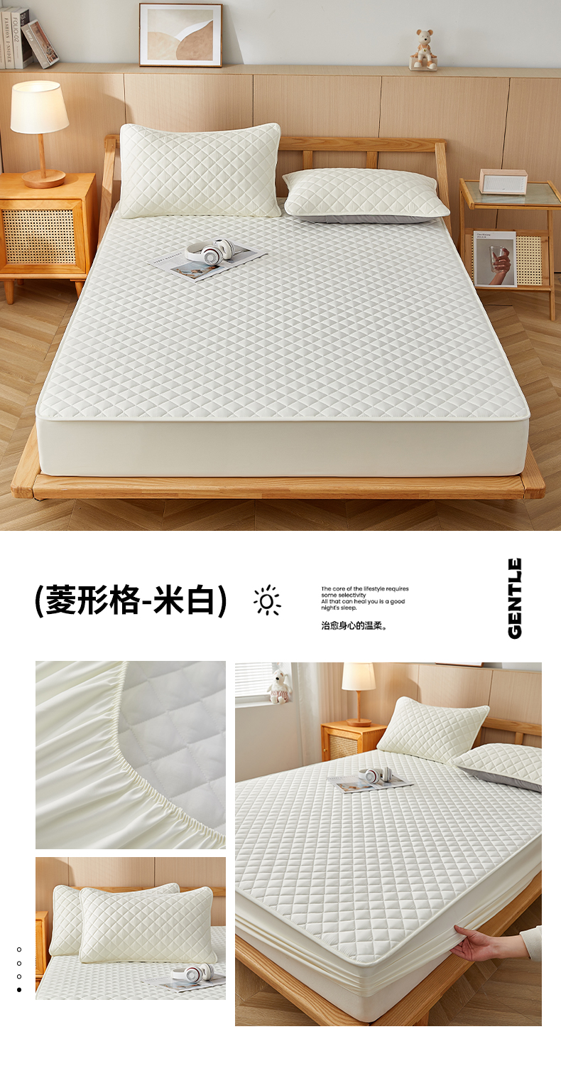 • 91家纺网 家纺一手货源 找家纺 布卢姆床垫 2025新款A类水洗棉大豆夹棉床笠 菱形格-米白