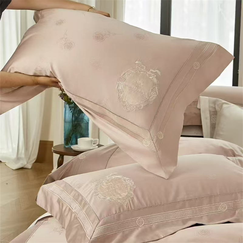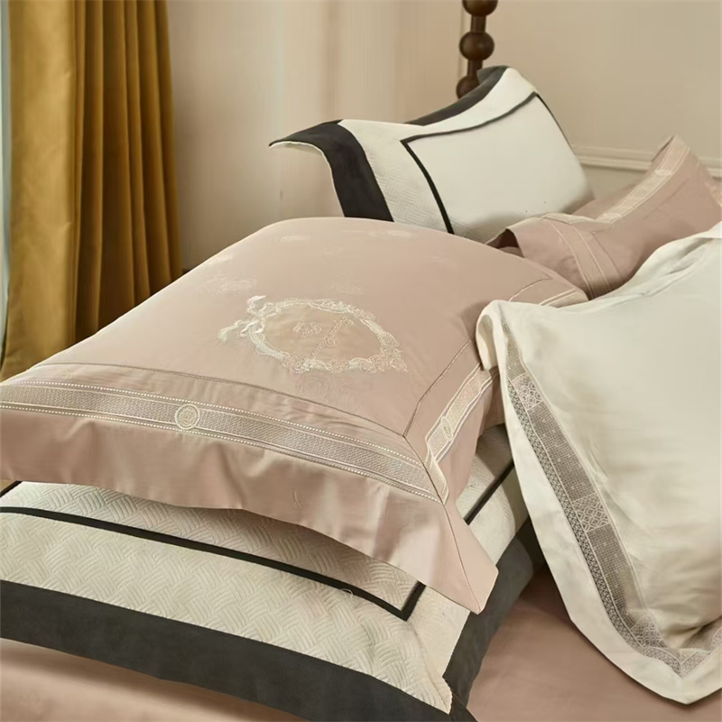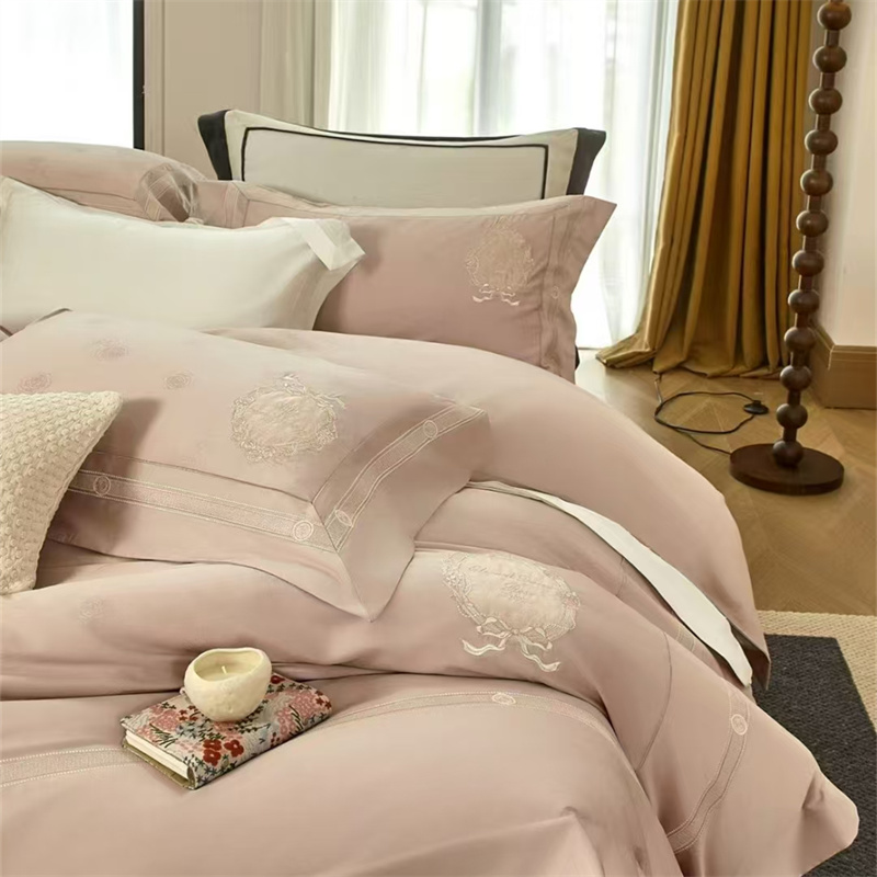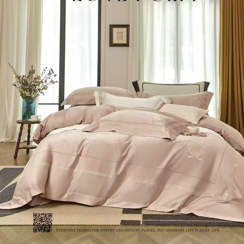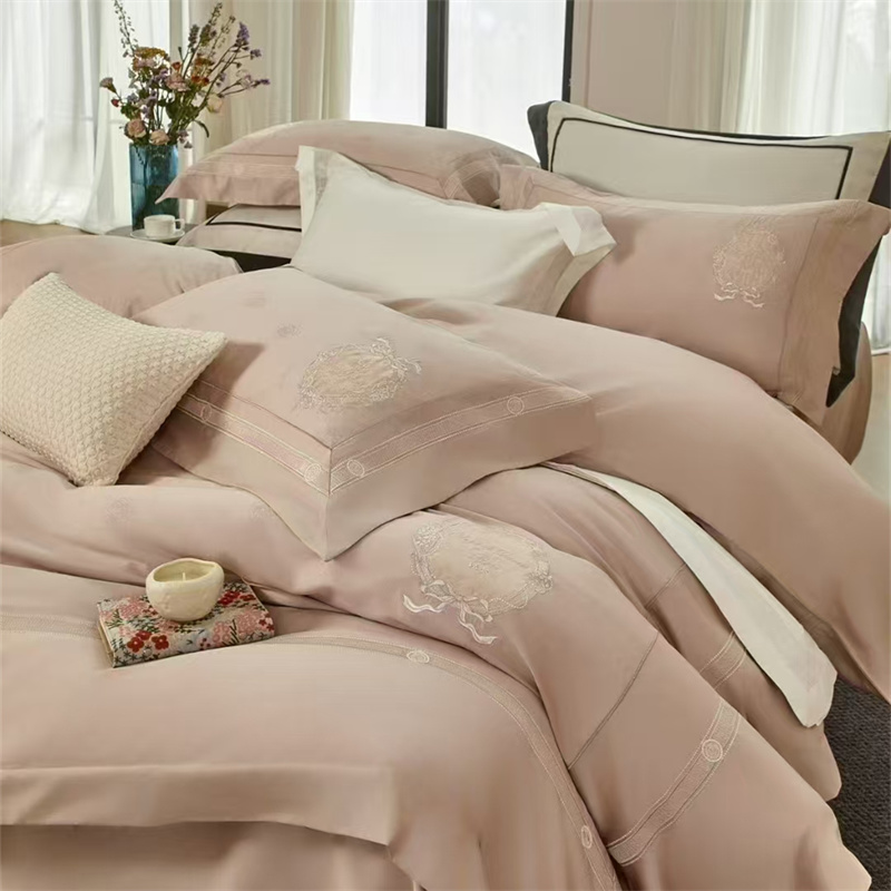 (总)玖玖爱家纺 2023新款120支贡缎长绒棉刺绣梦柔系列四件套,梦柔-香槟金,梦柔-香橙桔,梦柔-高级灰,梦柔-水蓝,梦柔-芙蓉玉