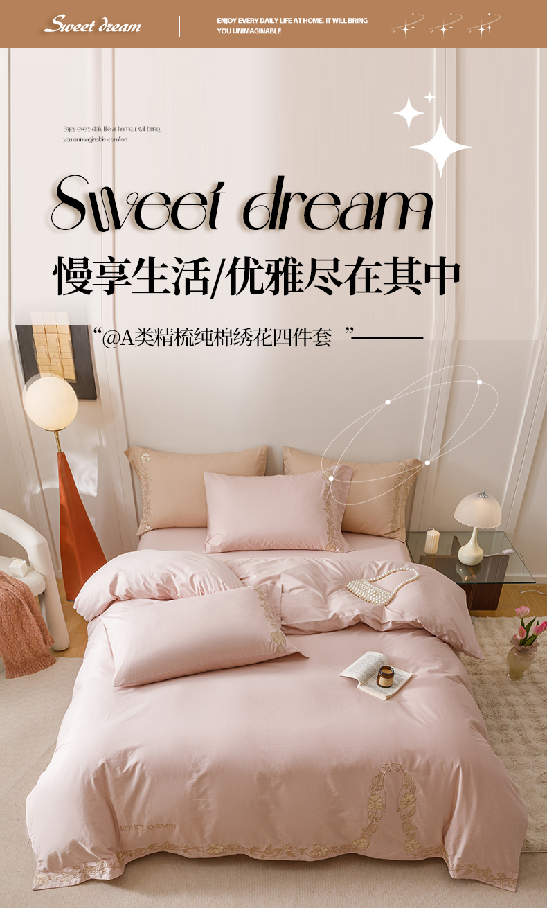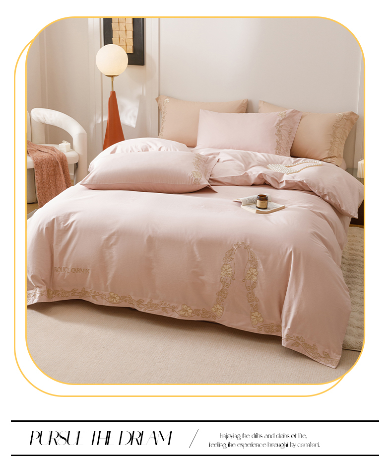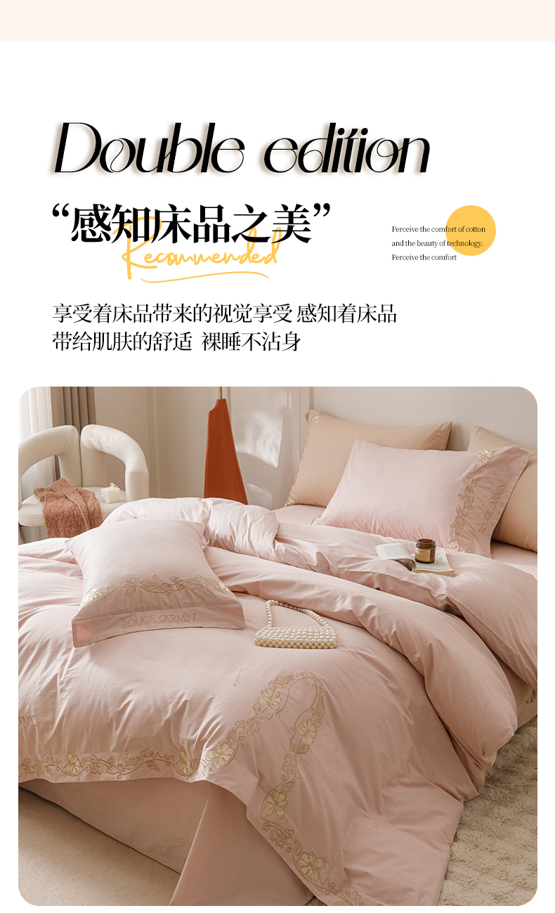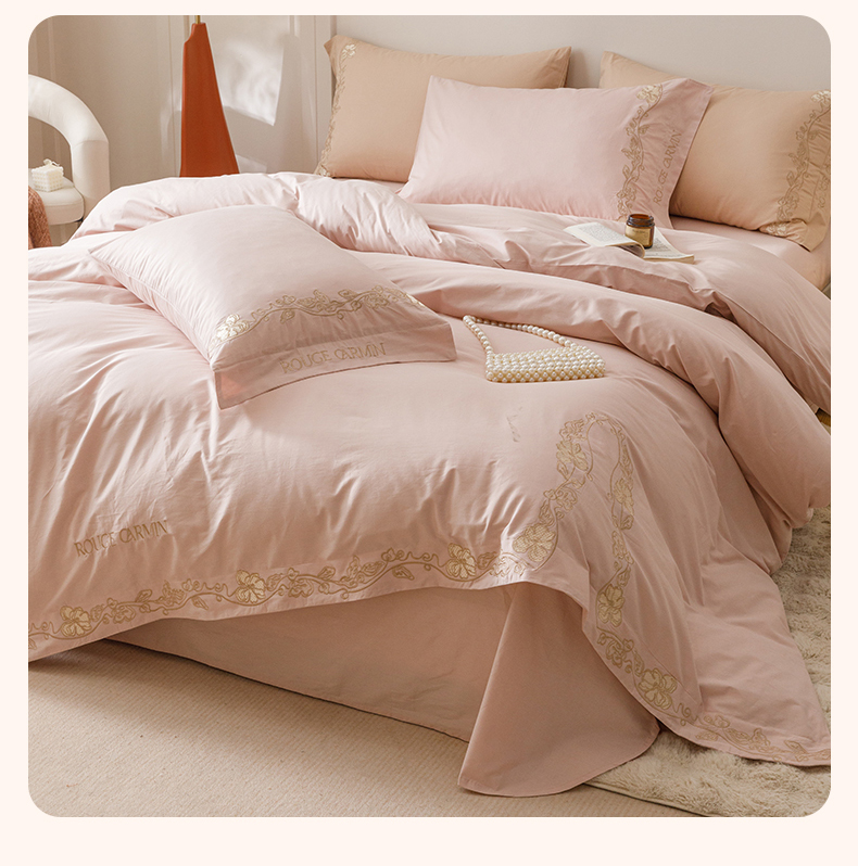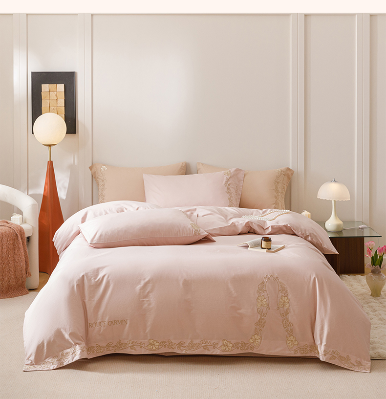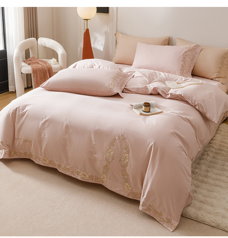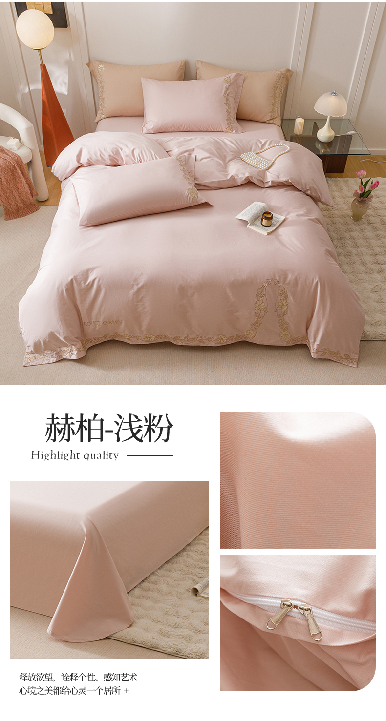 艾莱家纺 2025新款A类精梳纯棉刺绣花四件套-赫柏 赫柏-浅粉