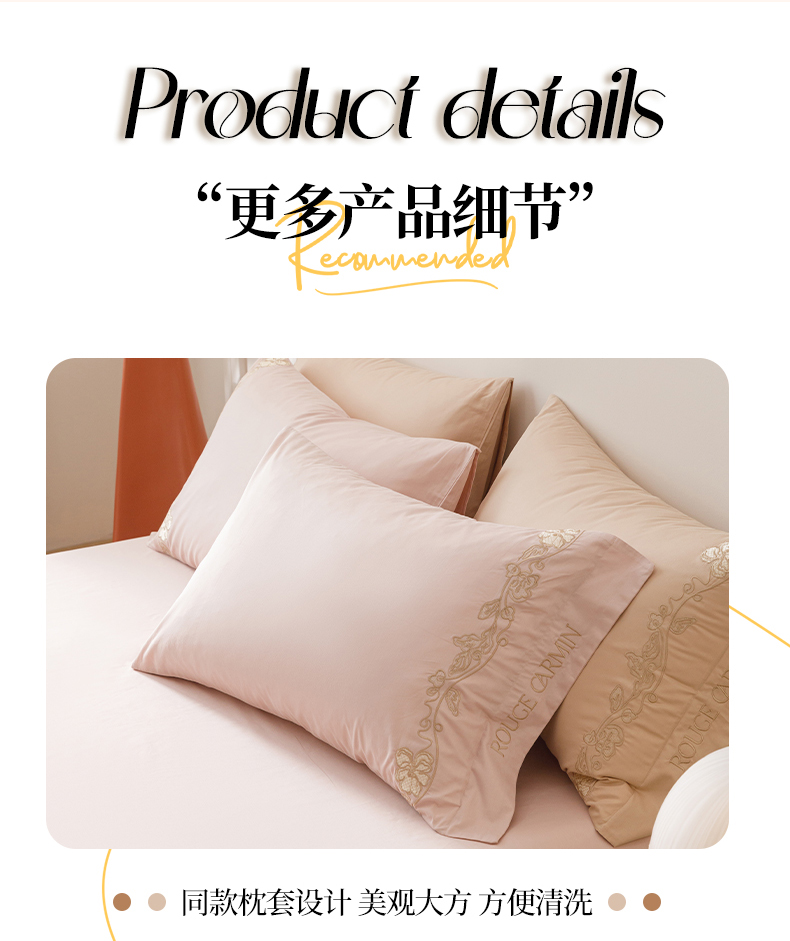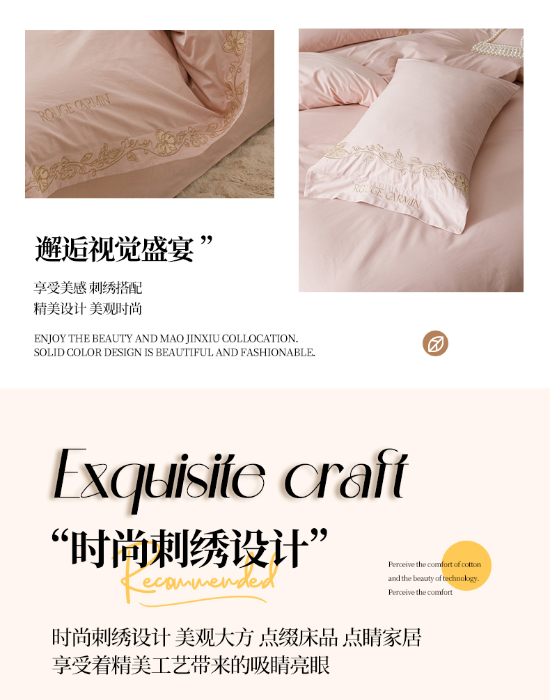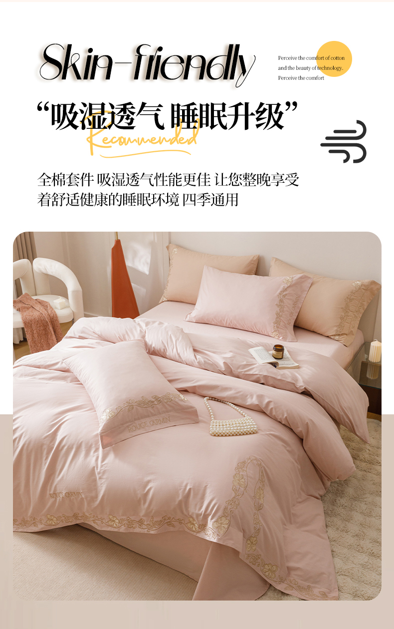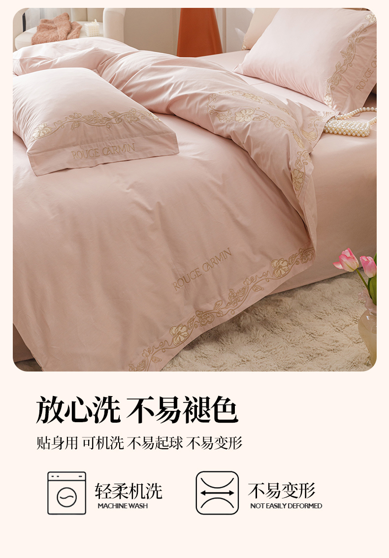 商品名称:艾莱家纺 2025新款A类精梳纯棉刺绣花四件套-赫柏 赫柏-浅粉
