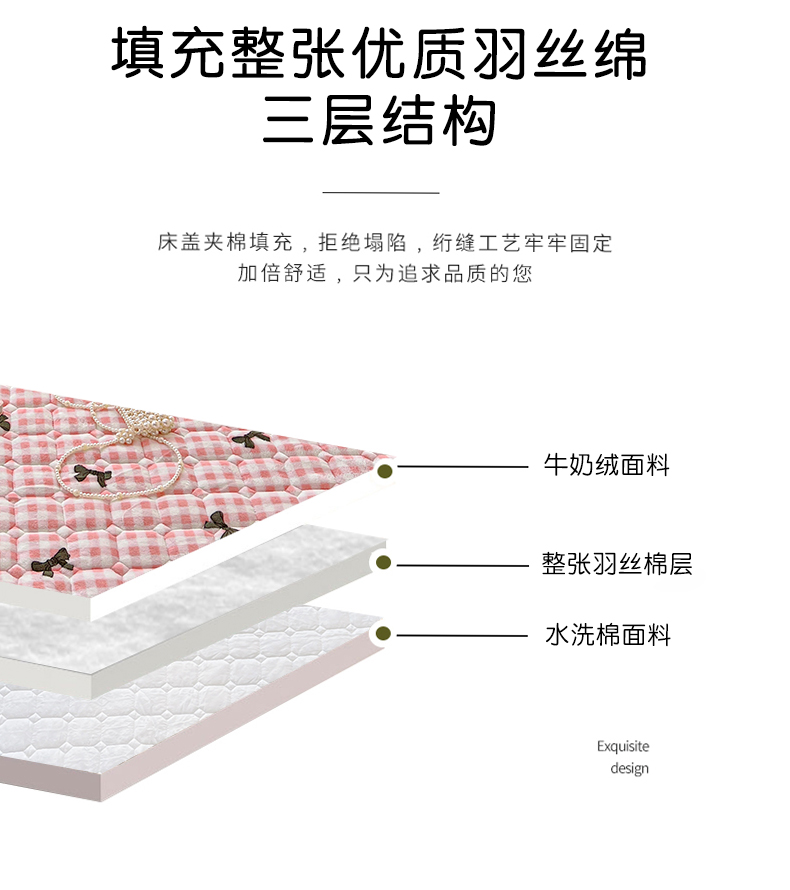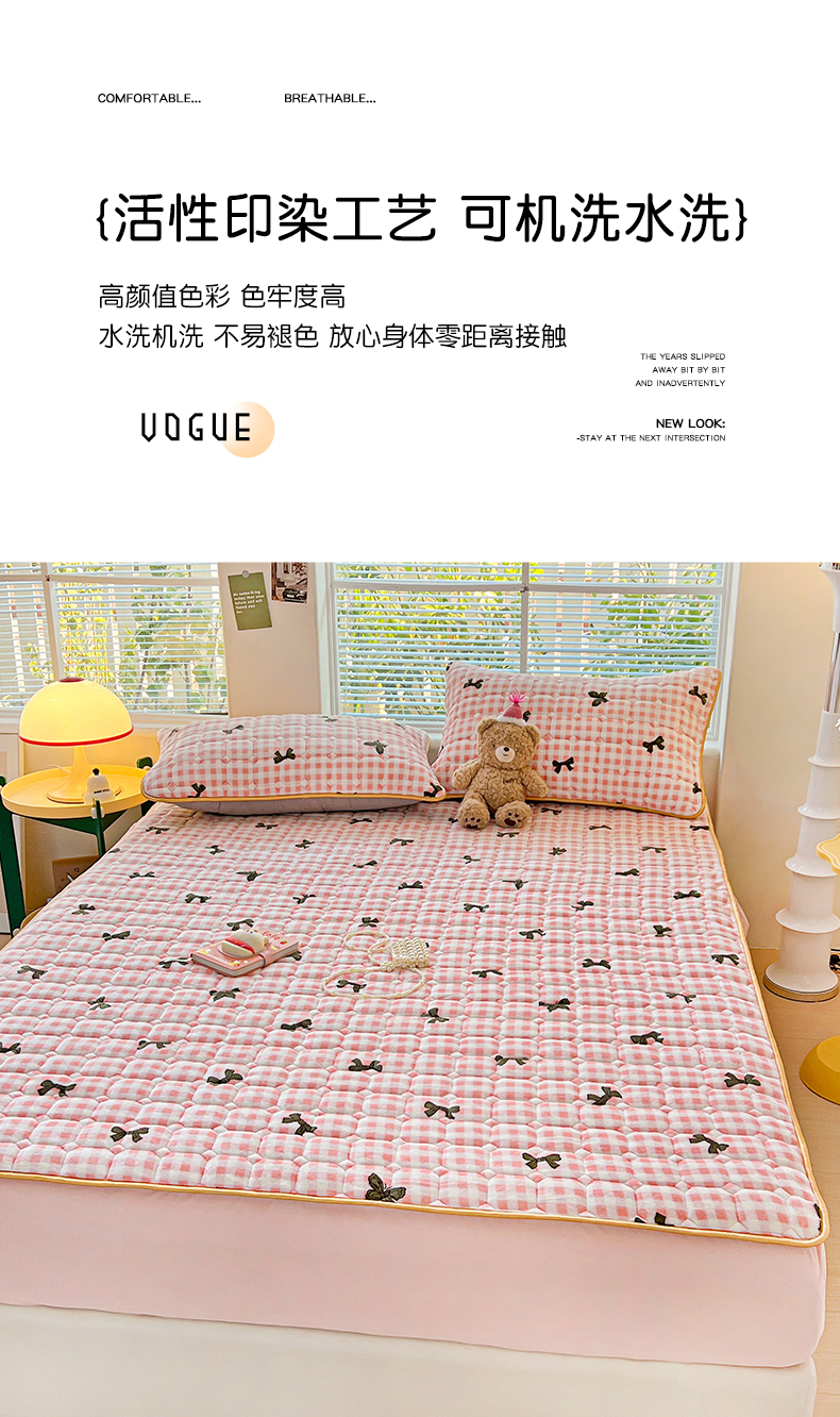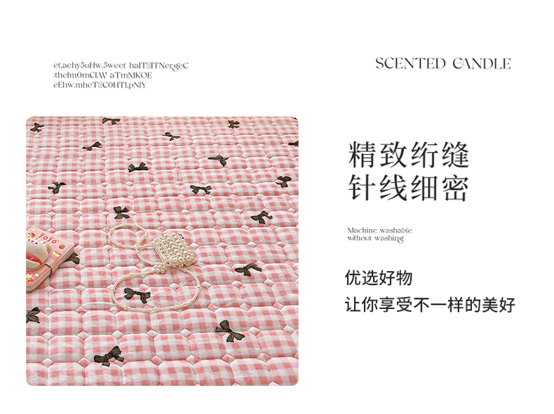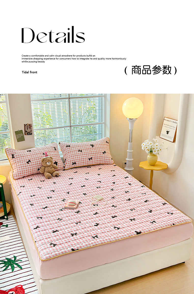 • 91家纺网 家纺一手货源 找家纺 帛洵 2025新款舒适亲肤高克重牛奶绒夹棉床笠 蝴蝶结-粉