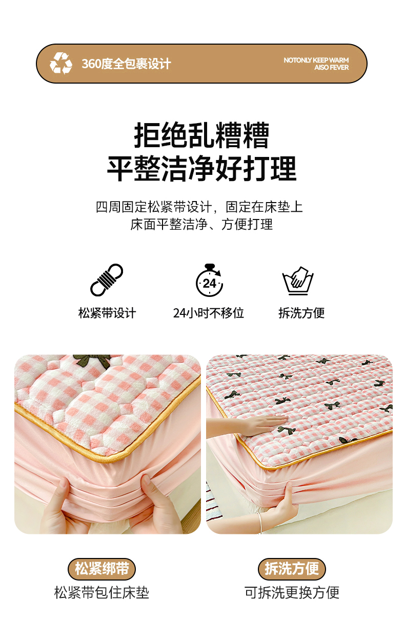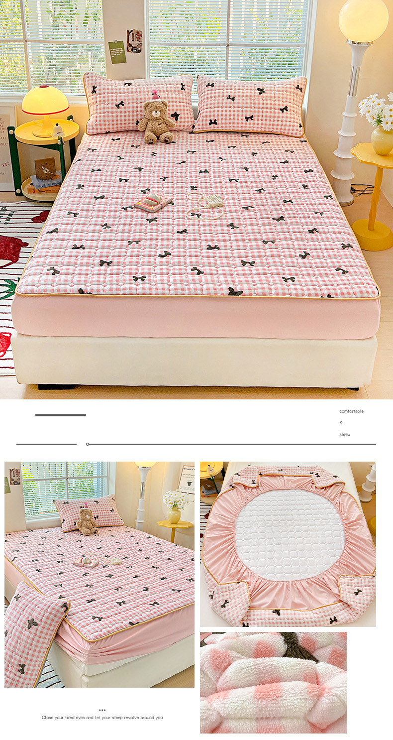 帛洵 2025新款舒适亲肤高克重牛奶绒夹棉床笠 蝴蝶结-粉