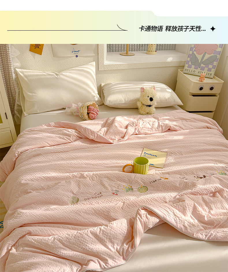 (总)睡棉坊 2025新款A类泡泡棉夏被韩版原创设计刺绣款空调被夏凉被,米白色,浅灰色,浅蓝色,浅玉色,水绿色,香槟色