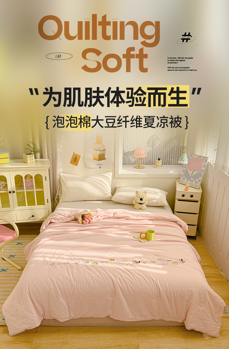 商品名称:睡棉坊 2025新款A类泡泡棉夏被韩版原创设计刺绣款空调被夏凉被 浅玉色
