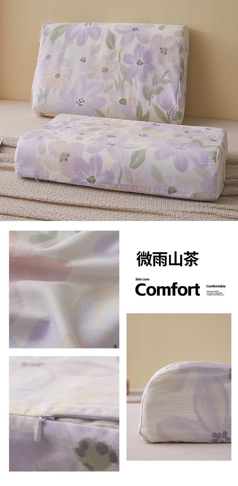 翎盈家纺 2025新款纯棉小清新乳胶枕专用枕套 微雨山茶