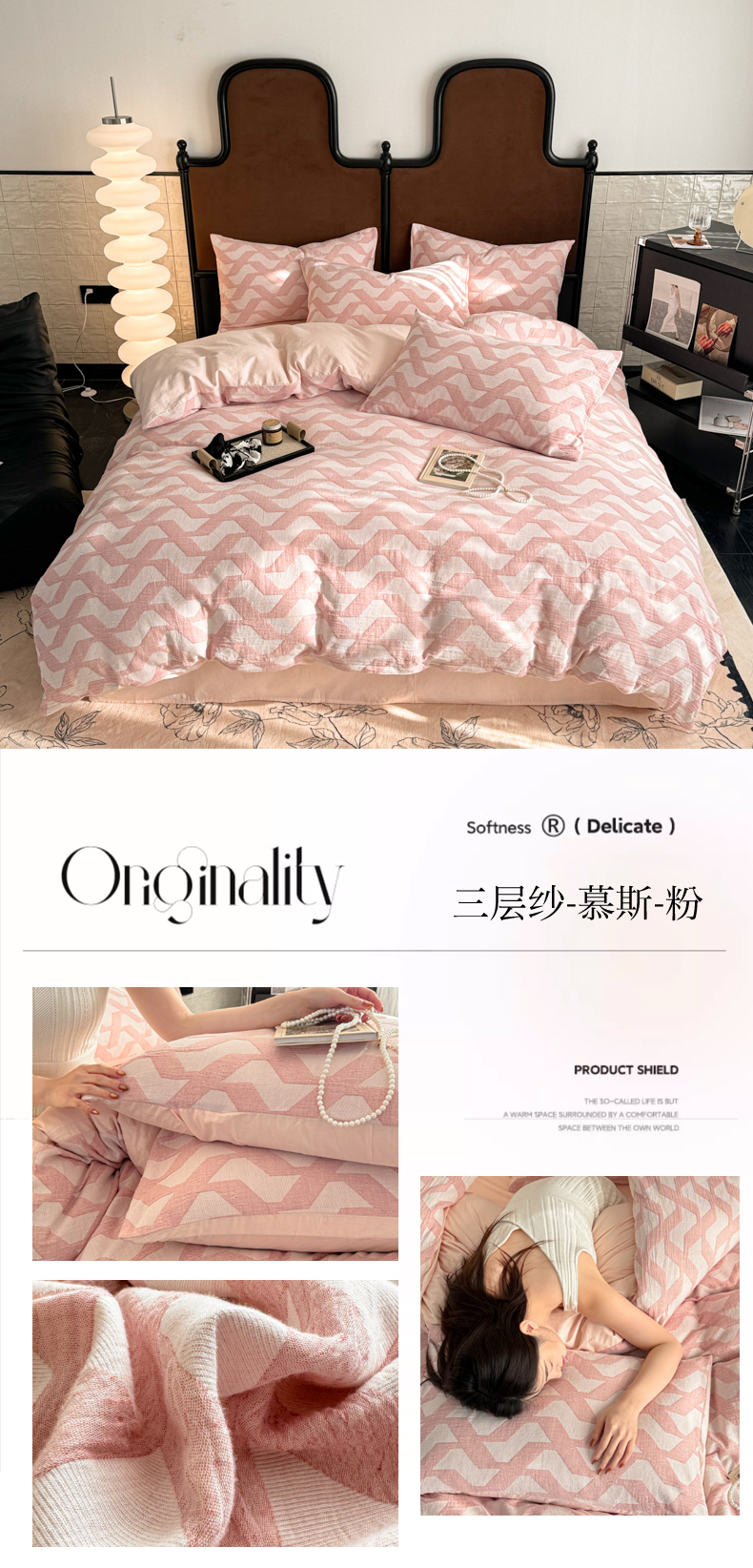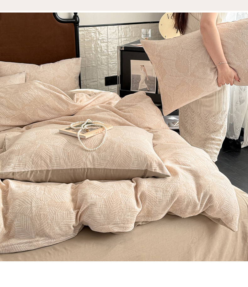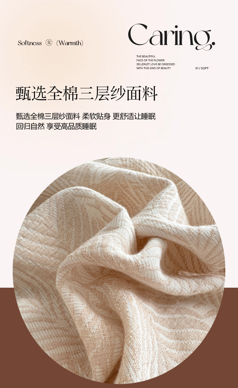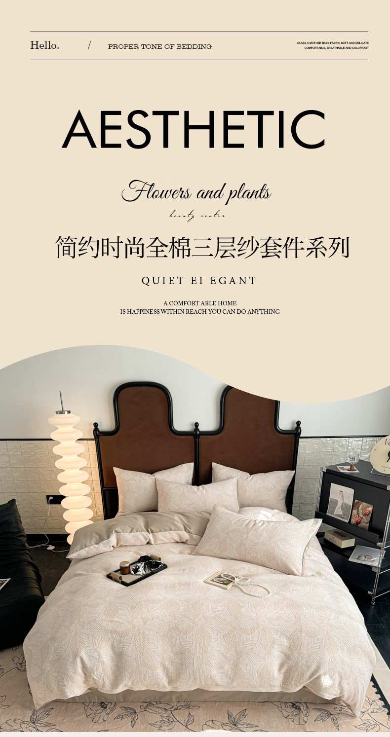 当前位置: 91家纺网 > 商品网购 > 床品套件 > 四件套 > 全棉普通四件套 > 眠博士 2025新款AB版简约时尚A类全棉三层纱系列四件套 三层纱-幸运叶-杏