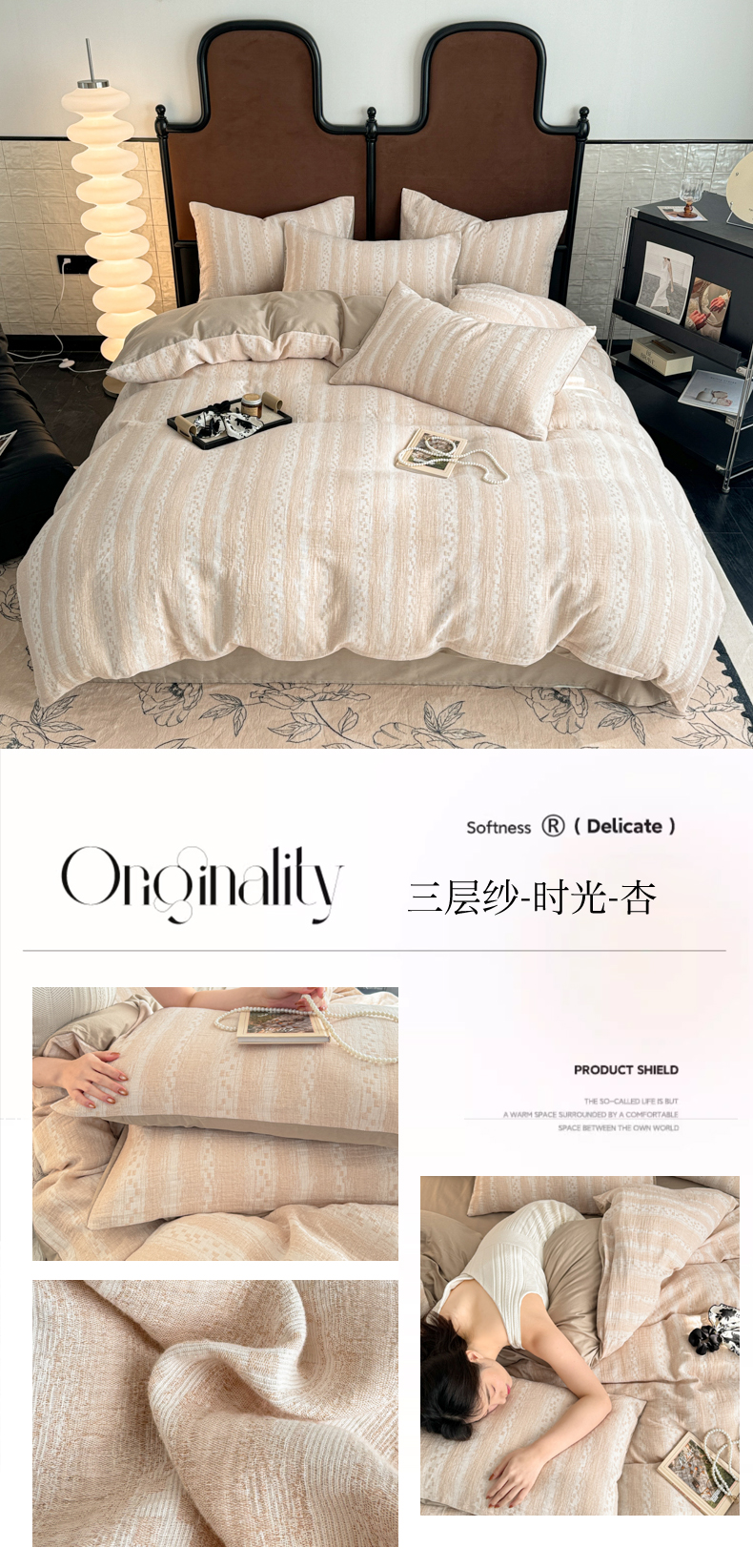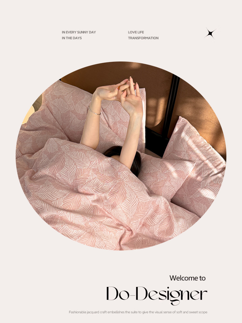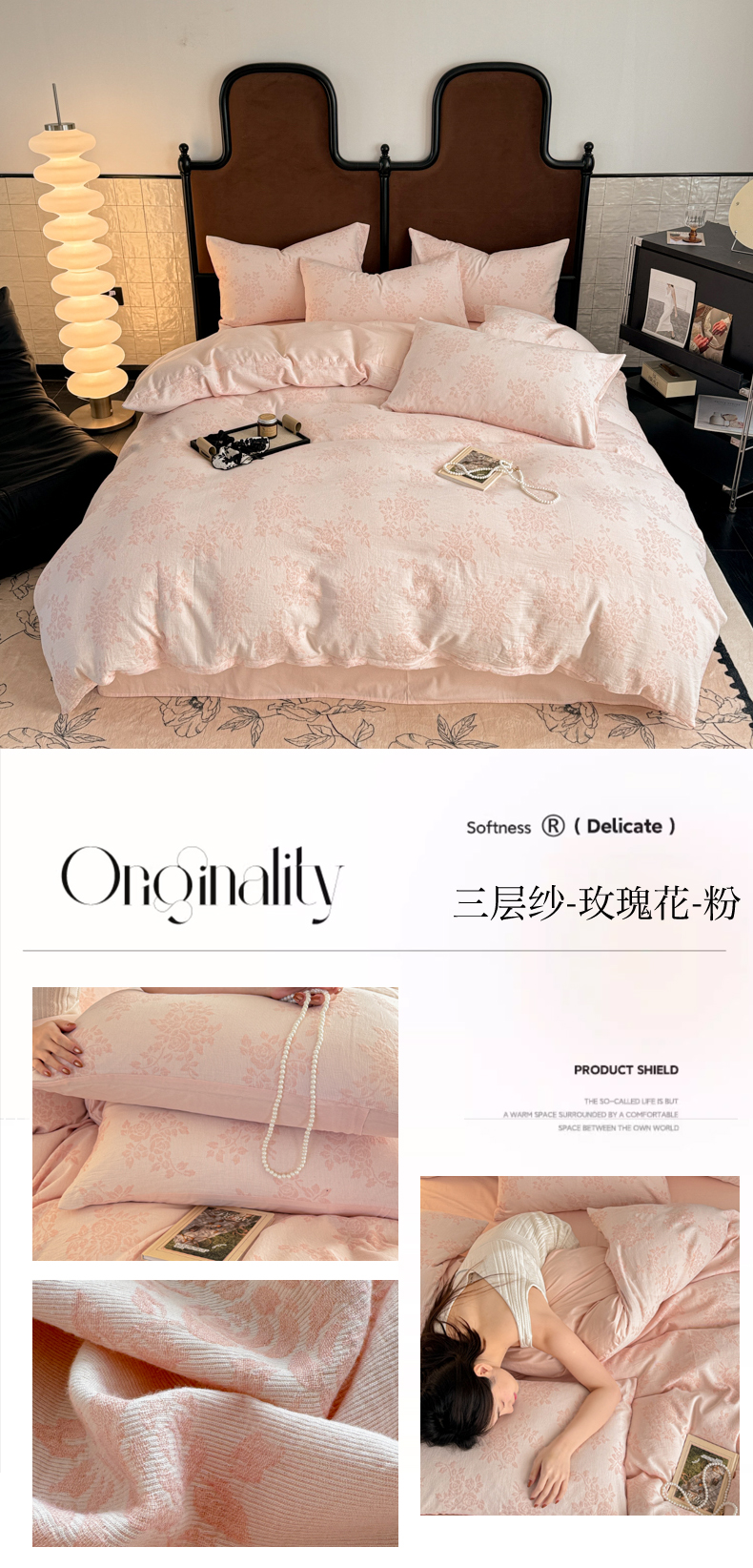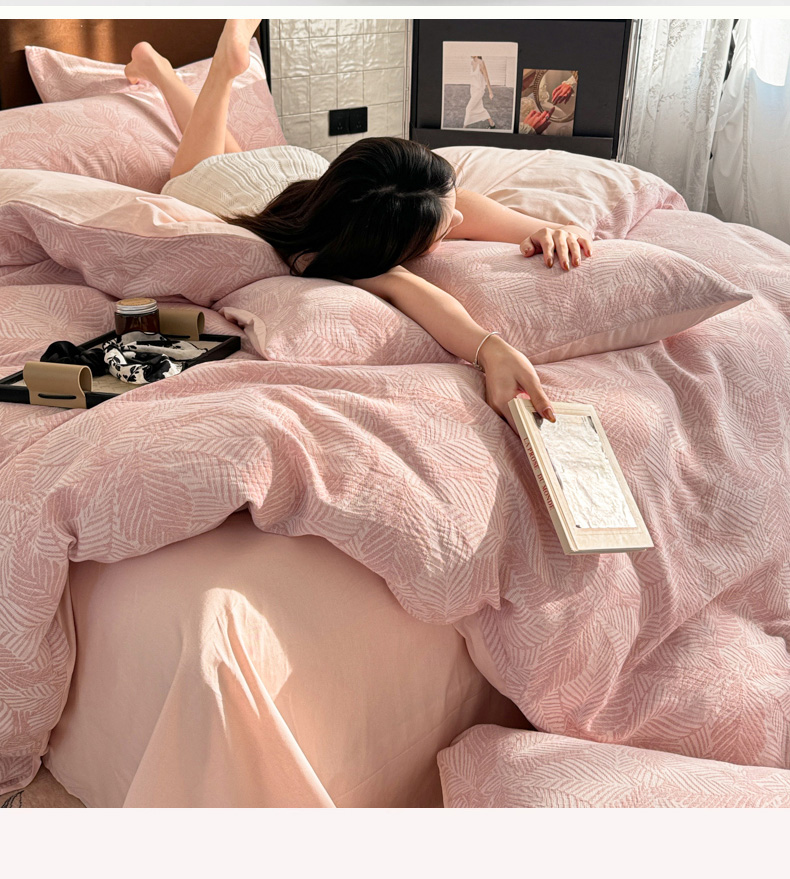 • 91家纺网 家纺一手货源 找家纺 眠博士2025新款AB版简约时尚A类全棉三层纱系列单被套 三层纱-幸运叶-粉