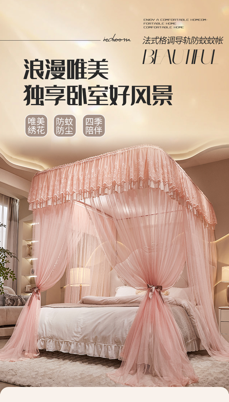 当前位置: 91家纺网 > 商品网购 > 床上用品 > 蚊帐 > 导轨蚊帐 > 夏彩 2025新款绣花加柔加密铝合金接口高度可调节轨道蚊帐88620 88620浅粉玉