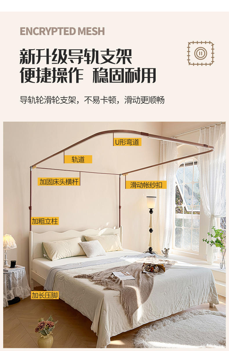 当前位置: 91家纺网 > 商品网购 > 床上用品 > 蚊帐 > 导轨蚊帐 > 夏彩 2025新款加柔加密铝合金接口高度可调节双层窗帘式导轨蚊帐88619 花语-粉