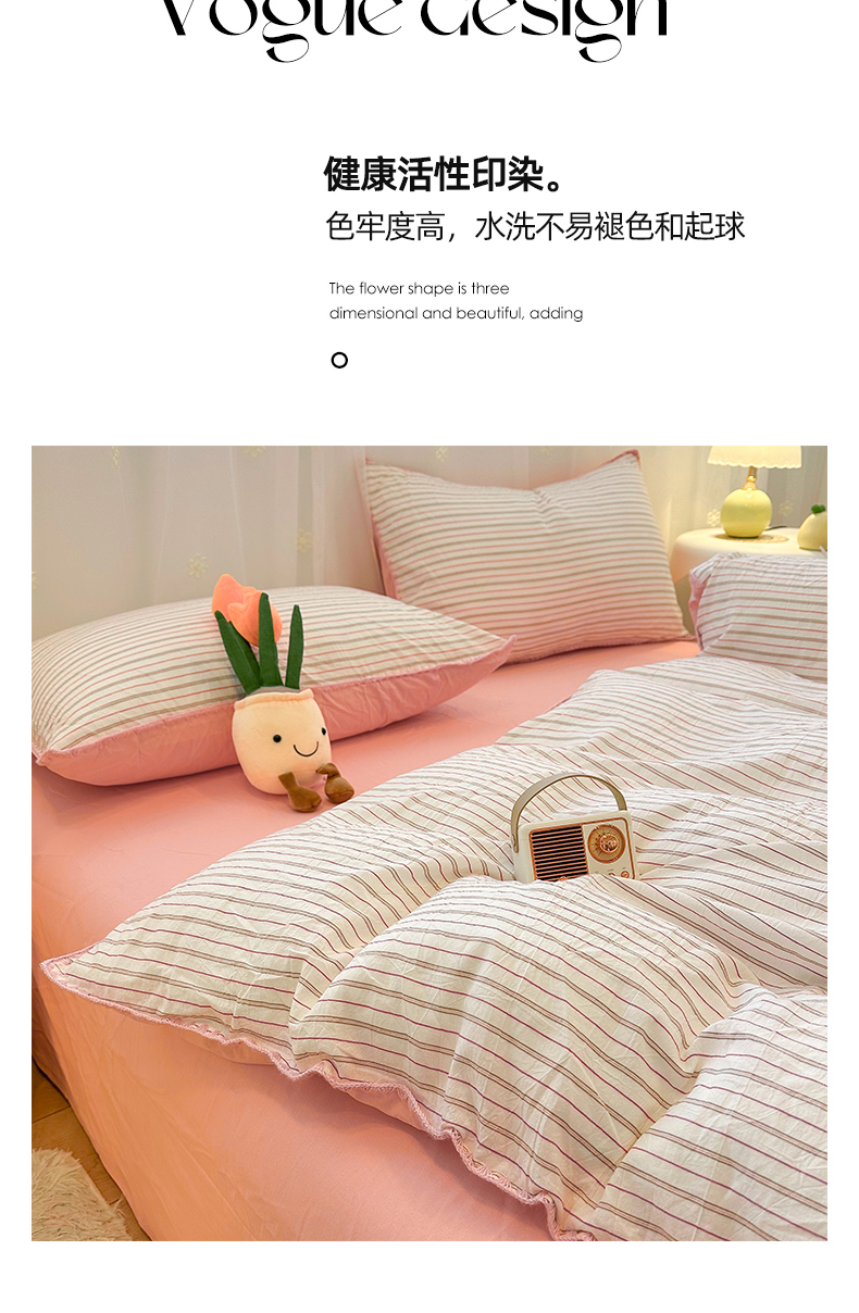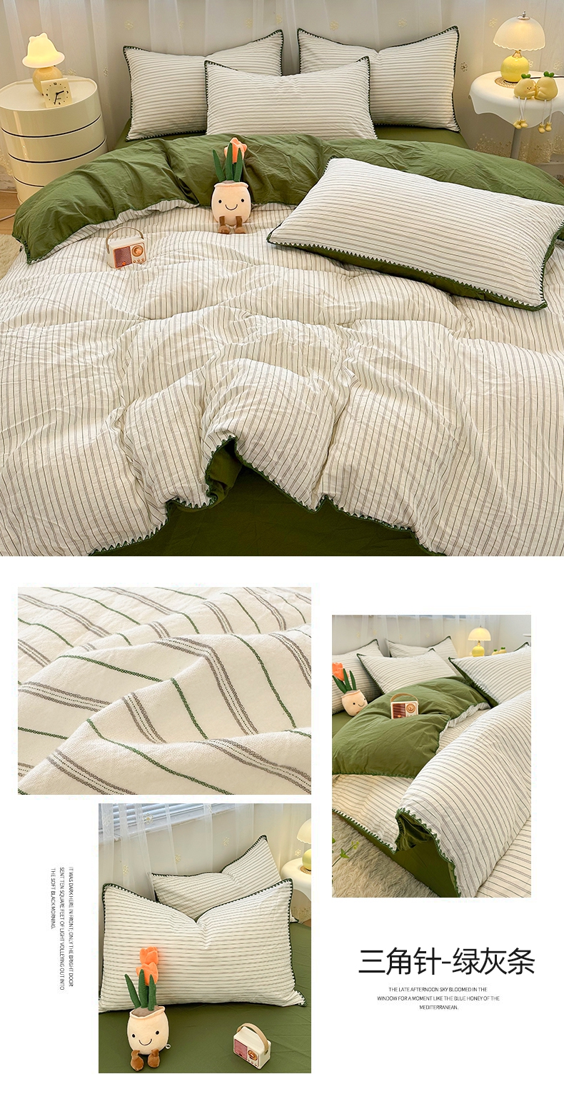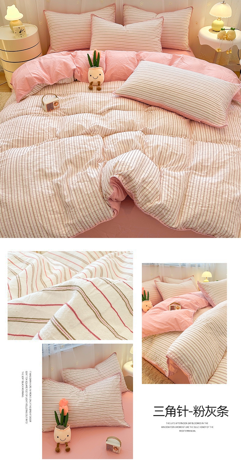 商品名称:(总)女子家纺 2025新款全棉纯棉水洗棉色织小提花三角针款四件套