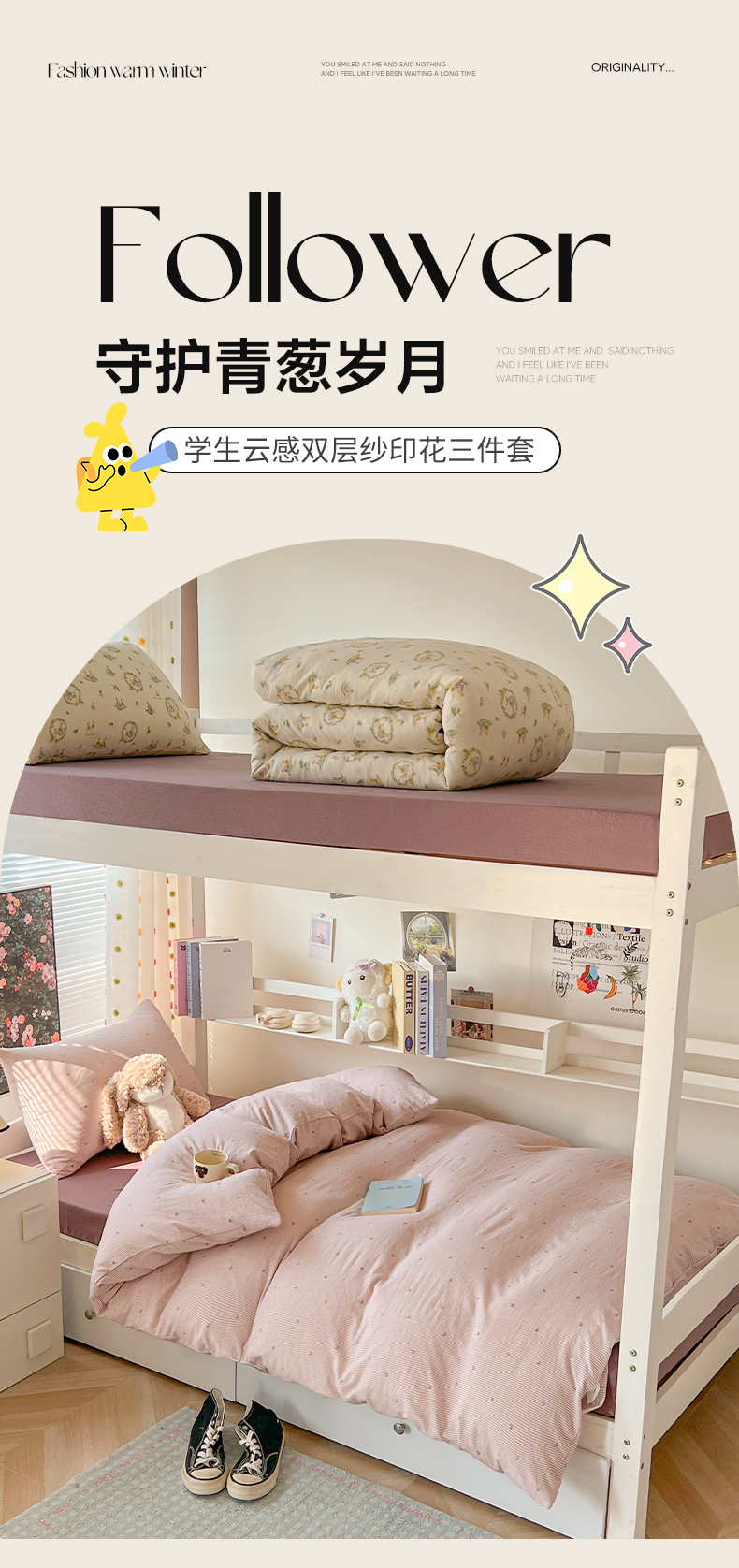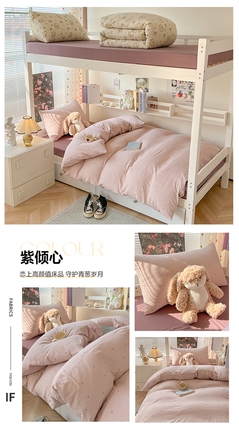 当前位置: 91家纺网 > 商品网购 > 床品套件 > 三件套 > 韩巢家纺 2025新款云感双层纱超柔裸睡级学生宿舍上下铺床单被套三件套-(提供卖家秀) 紫倾心