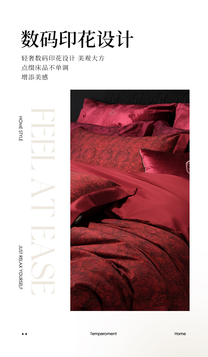 (总)阿那亚 2025新款雅缎婚庆大红数码印花四件套,法利娅,科罗娜,赛维娅