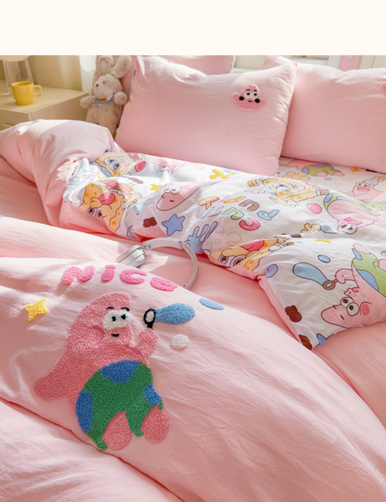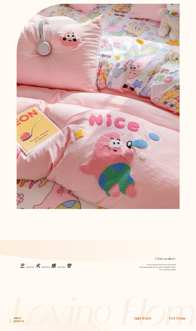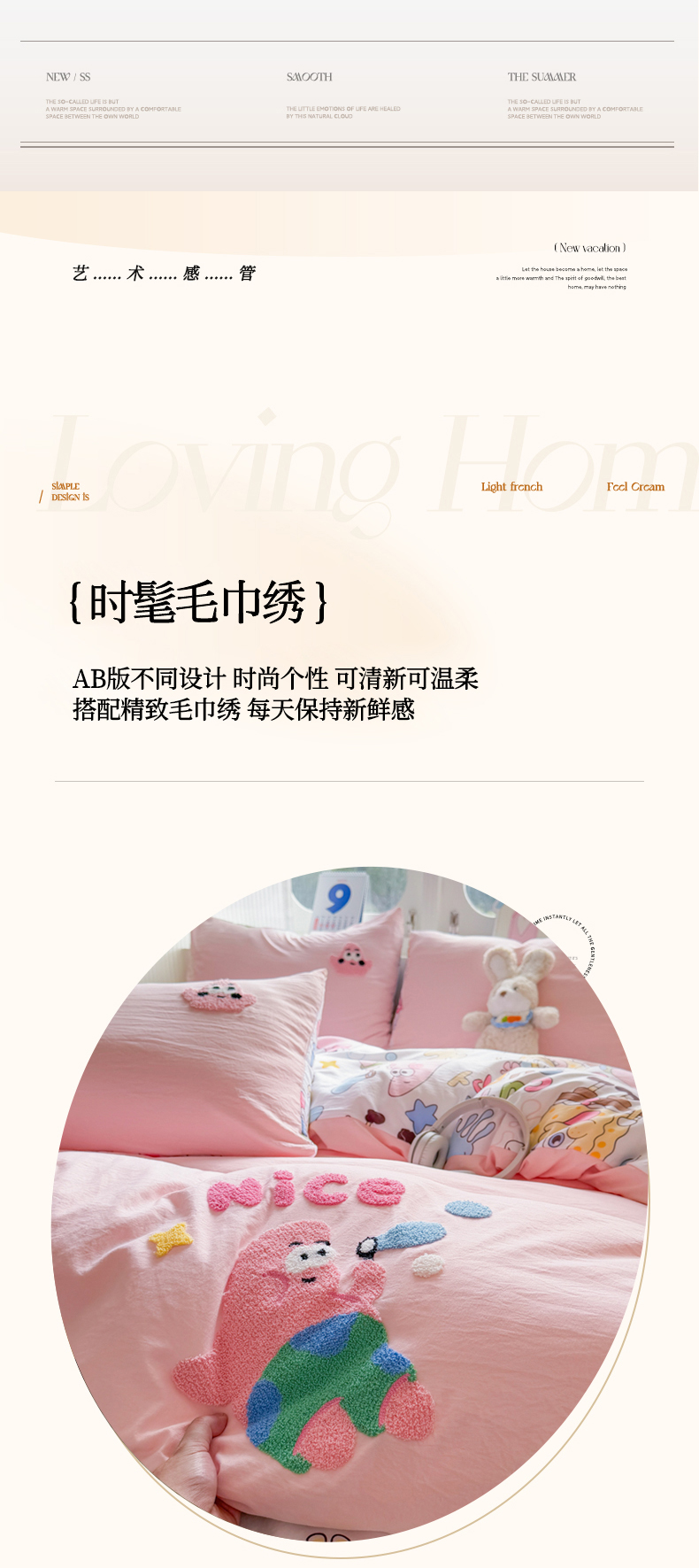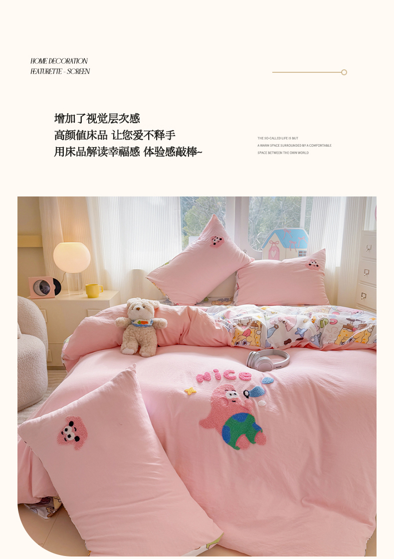 当前位置: 91家纺网 > 商品网购 > 床品套件 > 四件套 > 化纤活性四件套 > 晚爱 2025新款A类ins风毛巾绣三丽鸥卡通水洗棉超柔亲肤云朵棉四件套 派大星