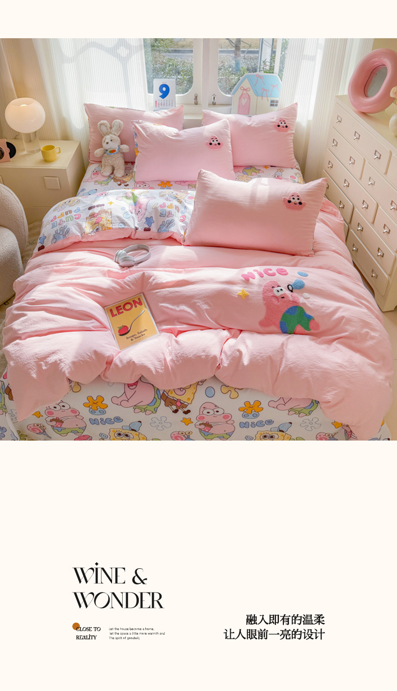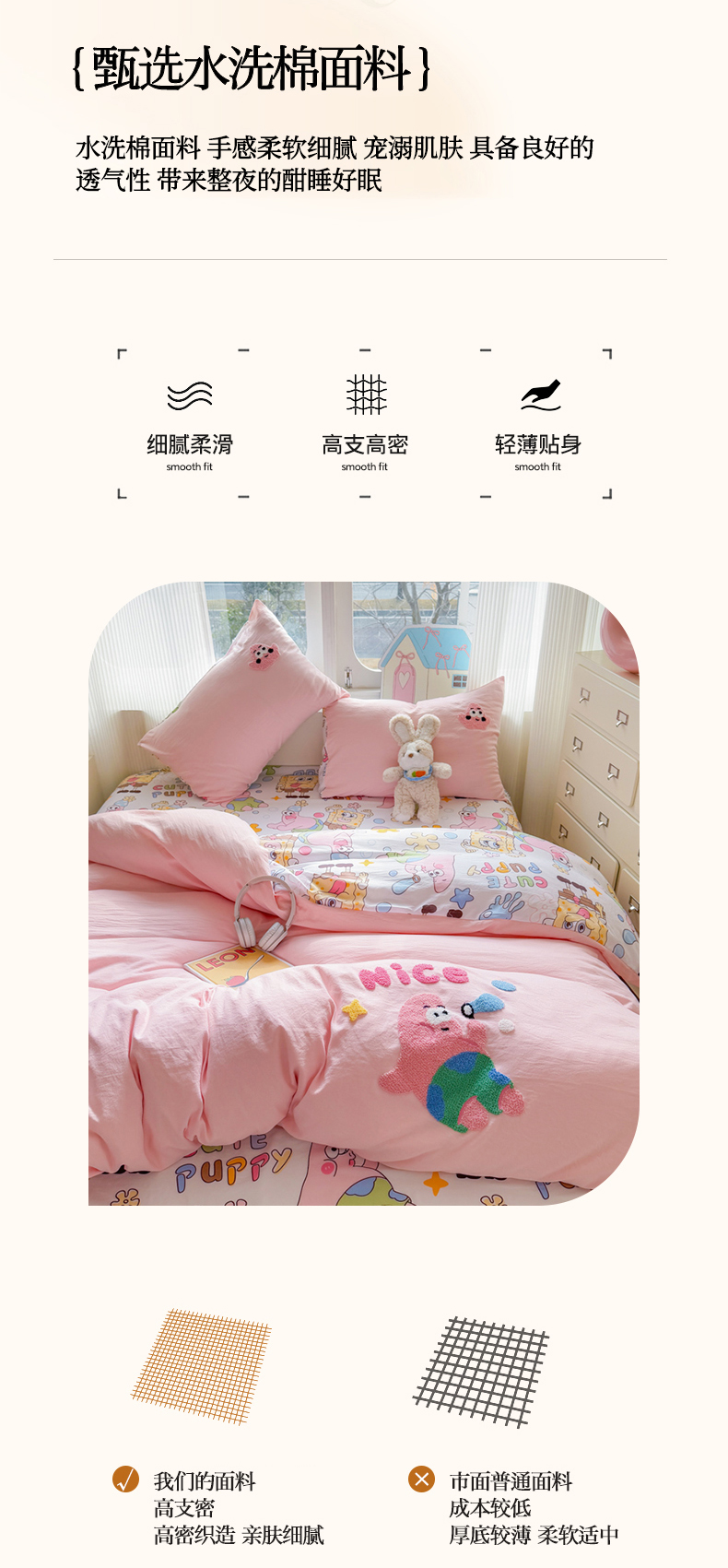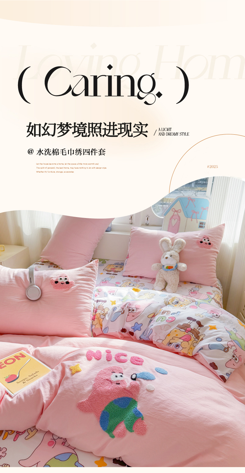 当前位置: 91家纺网 > 商品网购 > 床品套件 > 四件套 > 化纤活性四件套 > 晚爱 2025新款A类ins风毛巾绣三丽鸥卡通水洗棉超柔亲肤云朵棉四件套 派大星