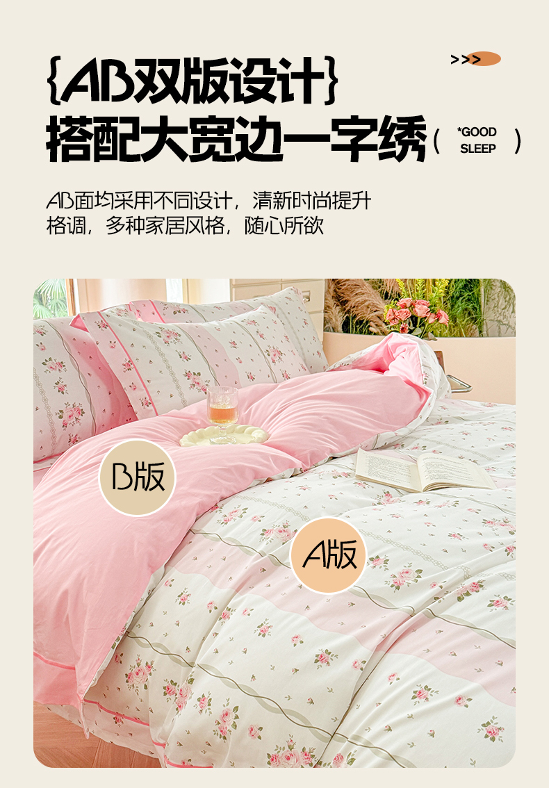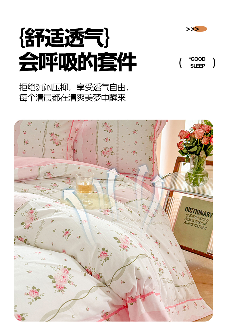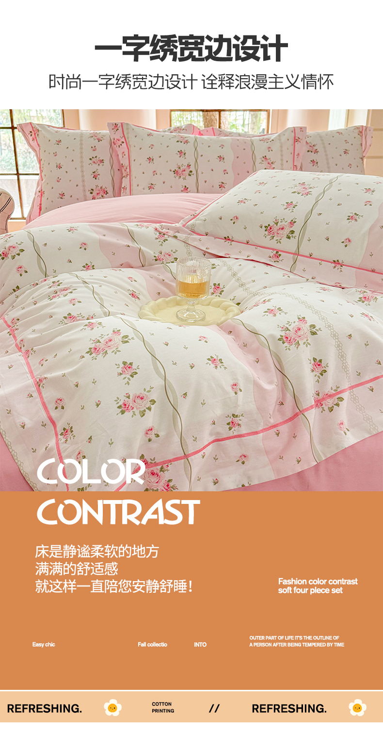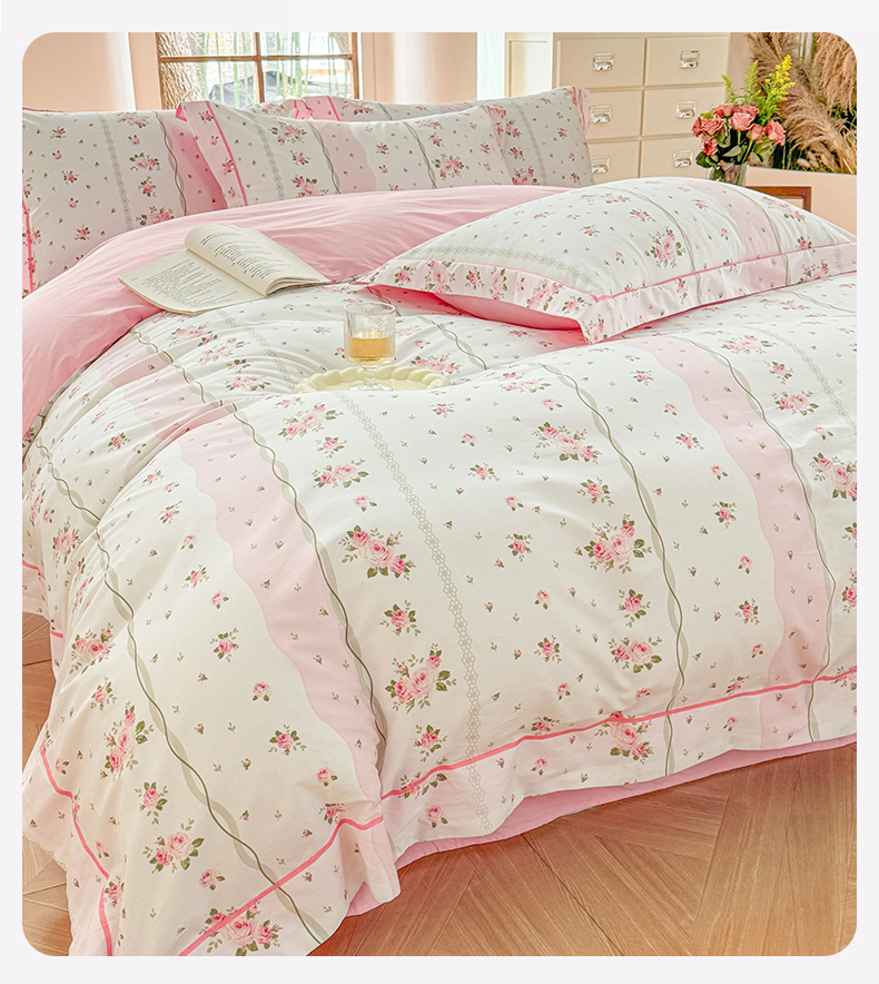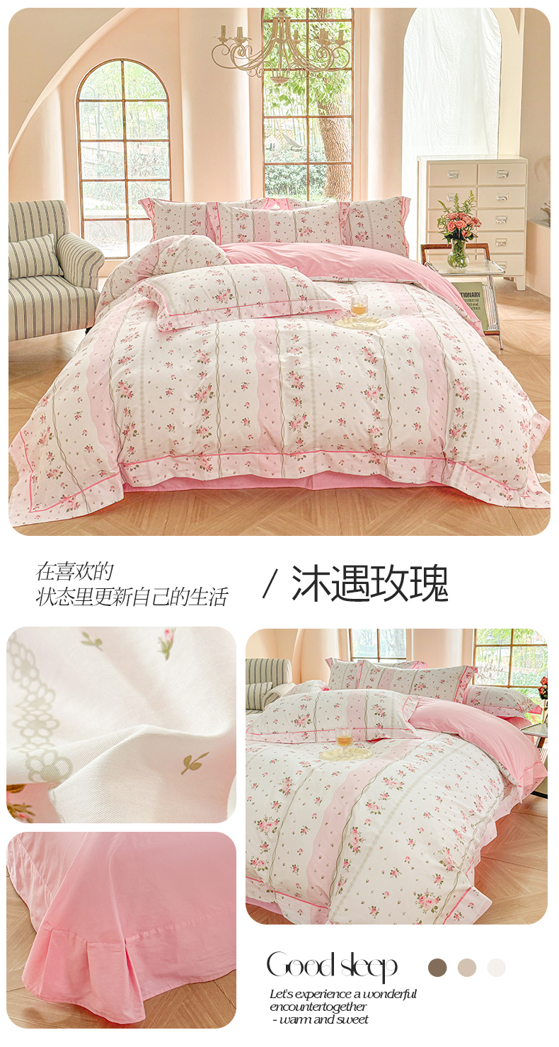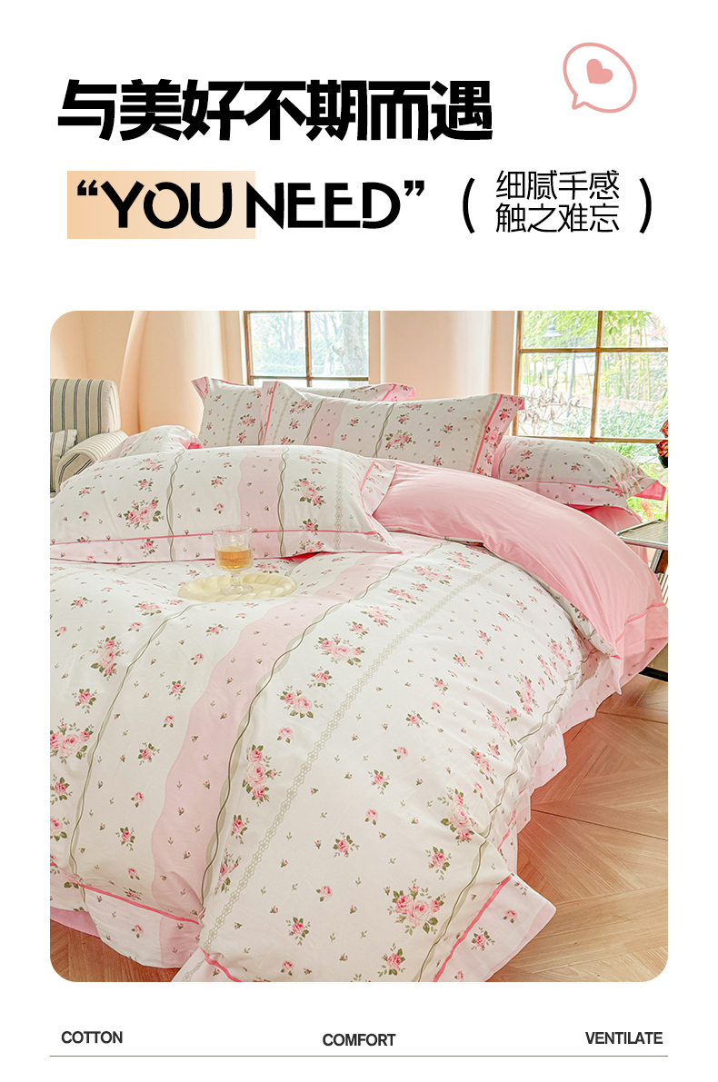当前位置: 91家纺网 > 商品网购 > 床品套件 > 四件套 > 全棉普通四件套 > 7V 2025新款轻奢大宽边100%纯棉四件套133*76全棉喷气宽幅长绒棉被套床单床笠套件 沐遇玫瑰