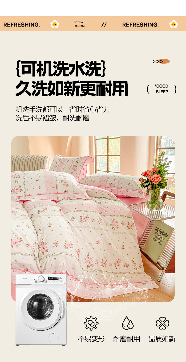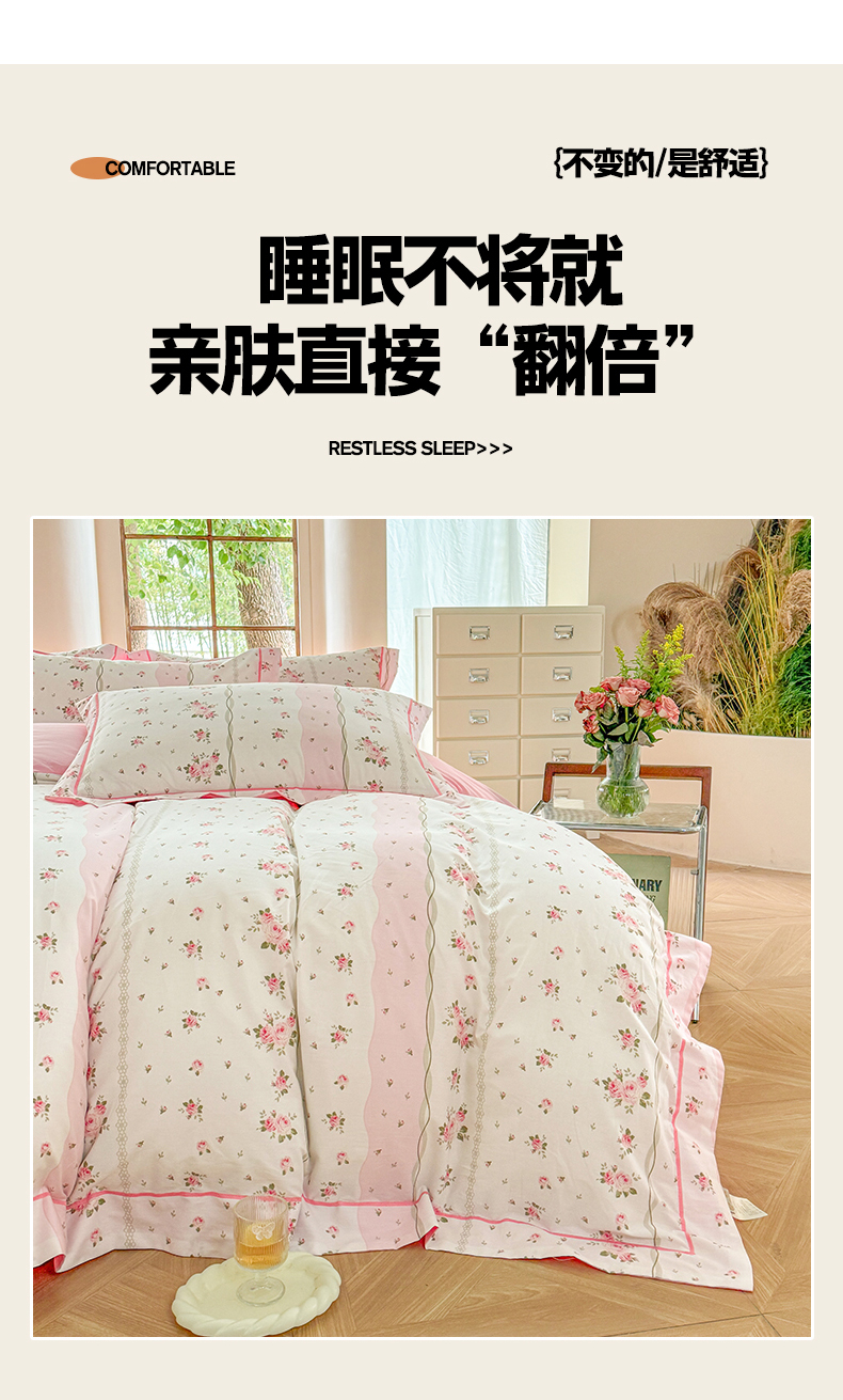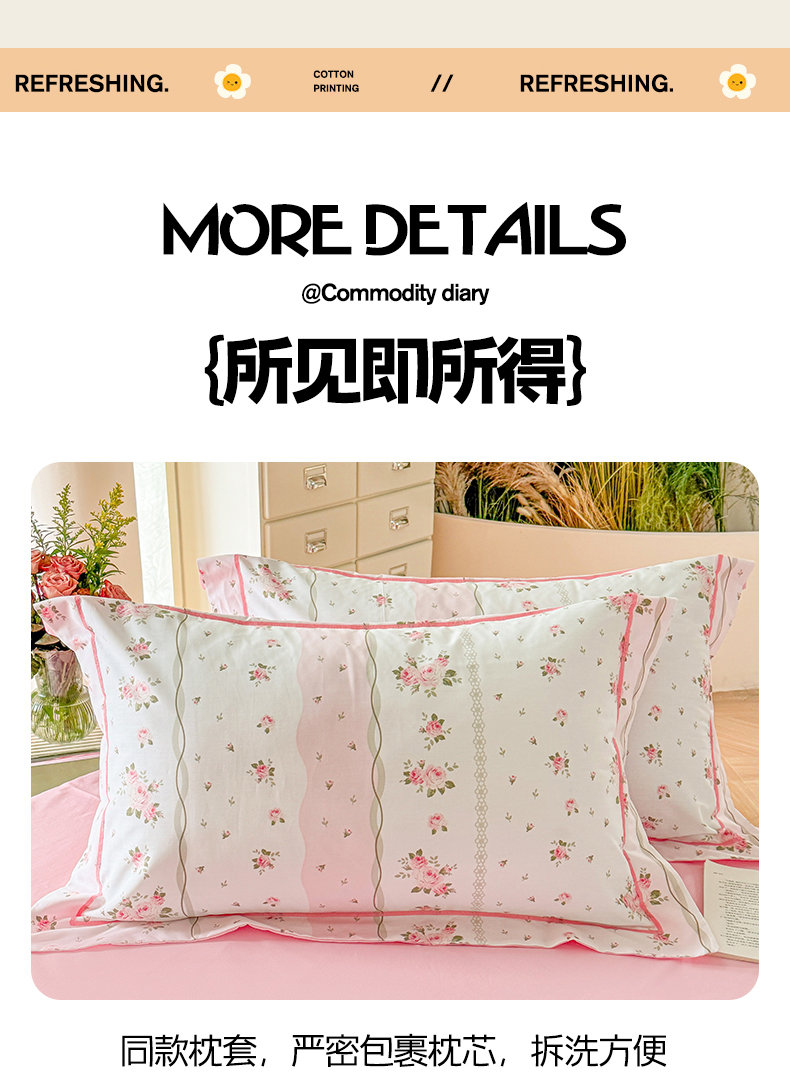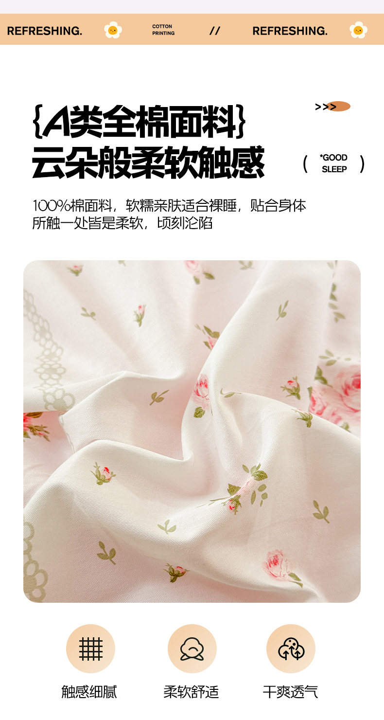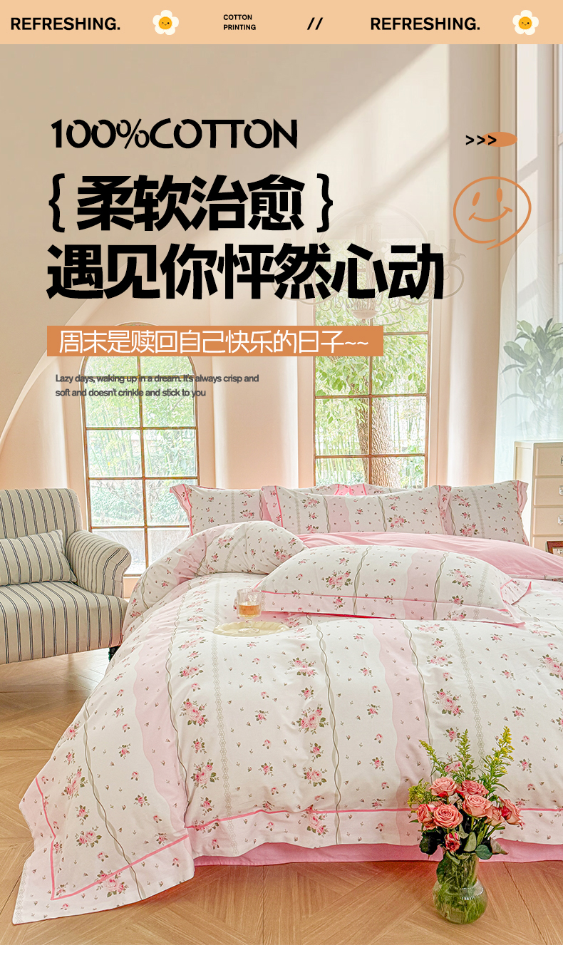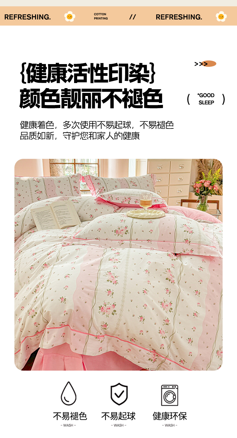 当前位置: 91家纺网 > 商品网购 > 床品套件 > 四件套 > 全棉普通四件套 > 7V 2025新款轻奢大宽边100%纯棉四件套133*76全棉喷气宽幅长绒棉被套床单床笠套件 沐遇玫瑰