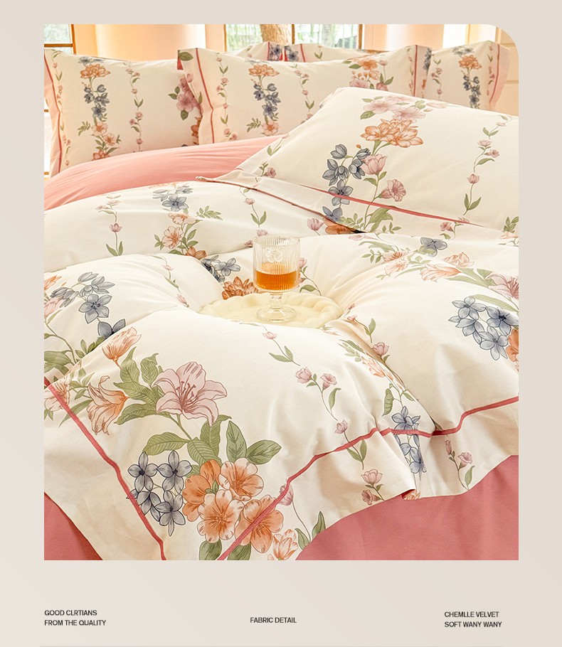 (总)7V 2025新款轻奢大宽边100%纯棉四件套133*76全棉喷气宽幅长绒棉被套床单床笠套件,橙光,春景-粉,花之茵,浣溪花-米,眷恋,可蒂狗-灰,乐悠闲,麦风,曼妙,玫瑰集-粉,蜜朵-米,沐遇玫瑰,星星兔,醒春集-灰,雅绘,侏罗纪