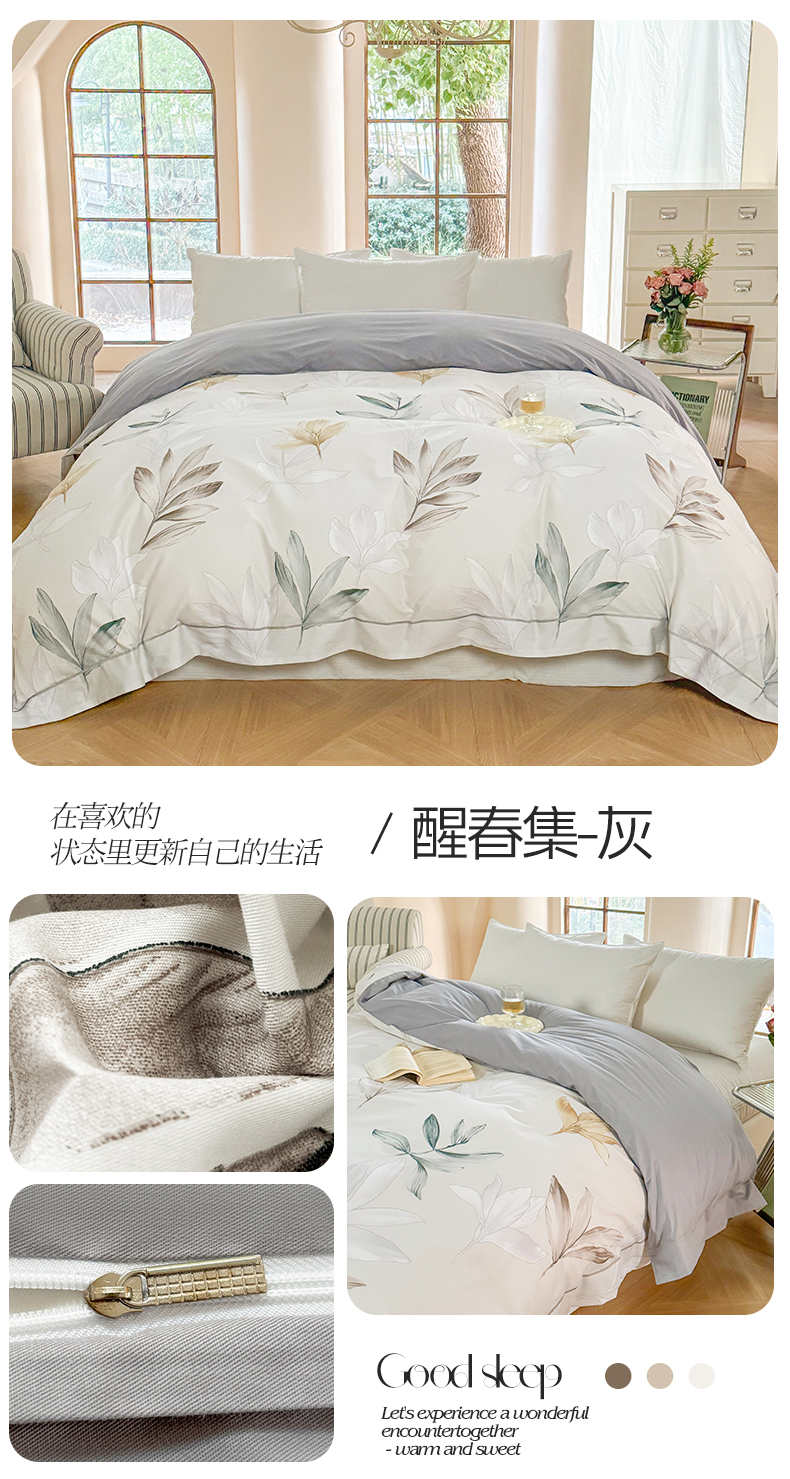 商品名称:7V 2025全棉被套133*76纯棉轻奢宽边单被套喷气长绒棉面料 醒春集-灰